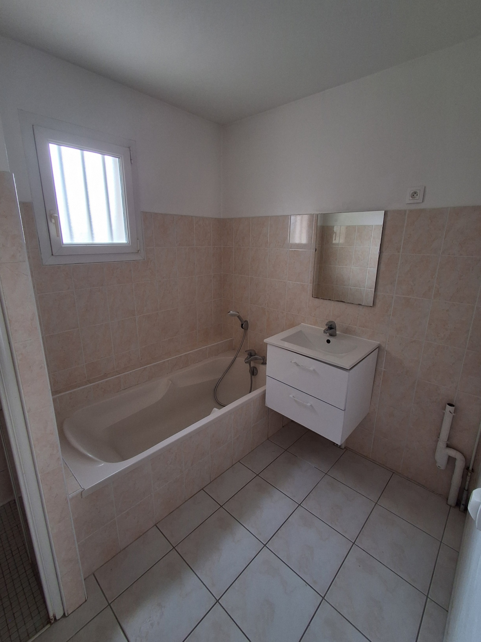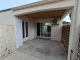Maison de plain-pied en très bon état proche toutes commodités, commerce et école, comprenant grande pièce de vie, trois chambres avec placard, une salle de bains avec une douche, wc séparé, cuisine US aménagée et semi équipée, une cours semi couverte , un garage privé et une place stationnement.