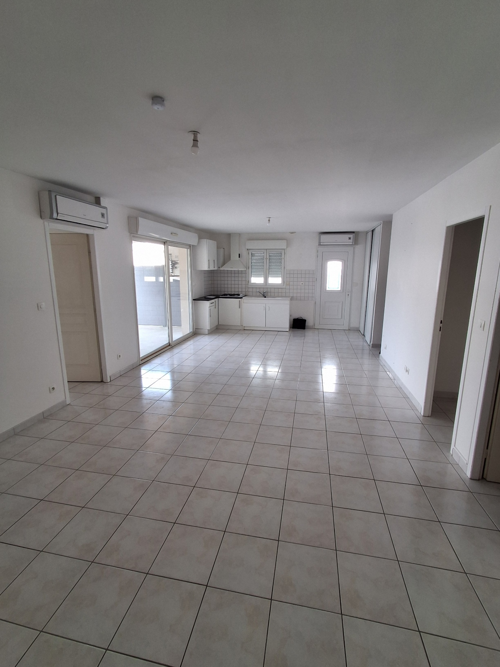 3 chambres, une salle de bains avec douche, un wc séparé, une grande pièce de vie avec cuisine us aménagée et semi équipée.