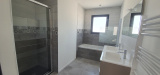 EXCLUSIVITE à 5 minutes d'Aigrefeuille au calme, maison neuve de 2021 dans un esprit contemporain comprenant : entrée avec placard, WC, belle pièce de vie (41 m²) avec cuisine US A/E (four, plaque de cuisson, hotte, LV) climatisation réversible, dégagement nuit, SDB (baignoire et douche, 2 vasques/meuble, sèche serviette soufflant), 3 chambres avec aménagements de placards, garage de 20 m² avec porte éléctrique et porte de service sur terrasse bois, le tout sur une parcelle de 336 m² clos. Produit réalisé avec goût.