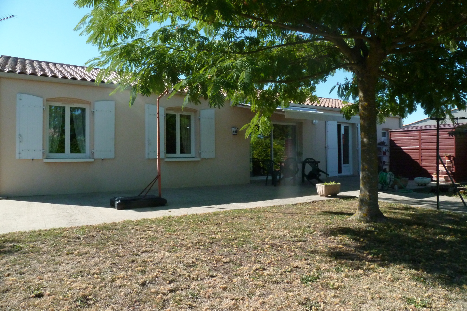 Au calme, jolie maison de plain-pied non mitoyenne en parfait état comprenant : entrée (placard), pièce de vie avec cuisine ouverte amémanée / équipée, dégagement, 3 chambres avec placards, WC et salle d'eau. Un garage de 24 m² ainsi qu'un abri jardin complètent ce bien, sur un terrain clos et arboré de 616 m² avec forage.