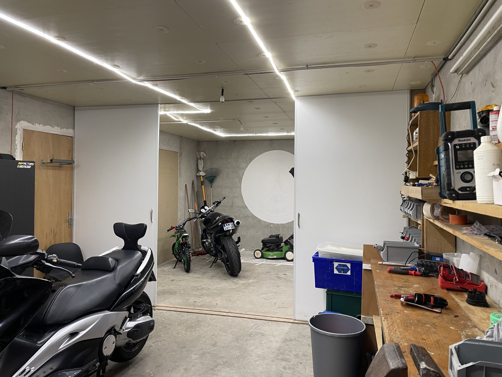 Au sous-sol : une grande chambre, salle d'eau, WC, buanderie, cave et garage.