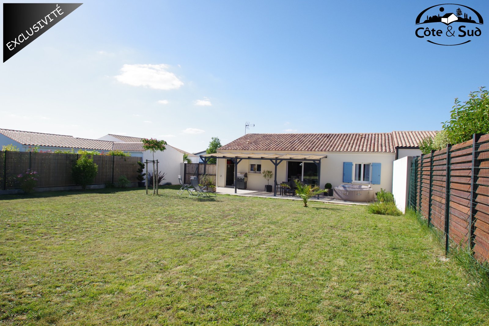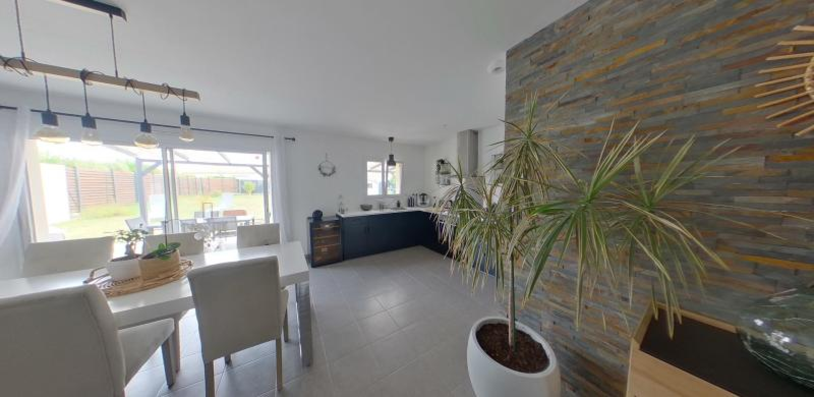 Tres beau Pavillon de P-Pied comprenant : entrée, belle pièce de vie ouvrant sur la terrasse, cuisine US A/E (plaque de cuisson, hotte, four), degagement, SDE, wc, 3 chambres, 1 garage, cabanon de jardin, le tout sur une belle parcelle de terrain clos de 617 m².