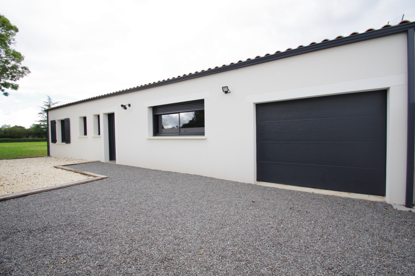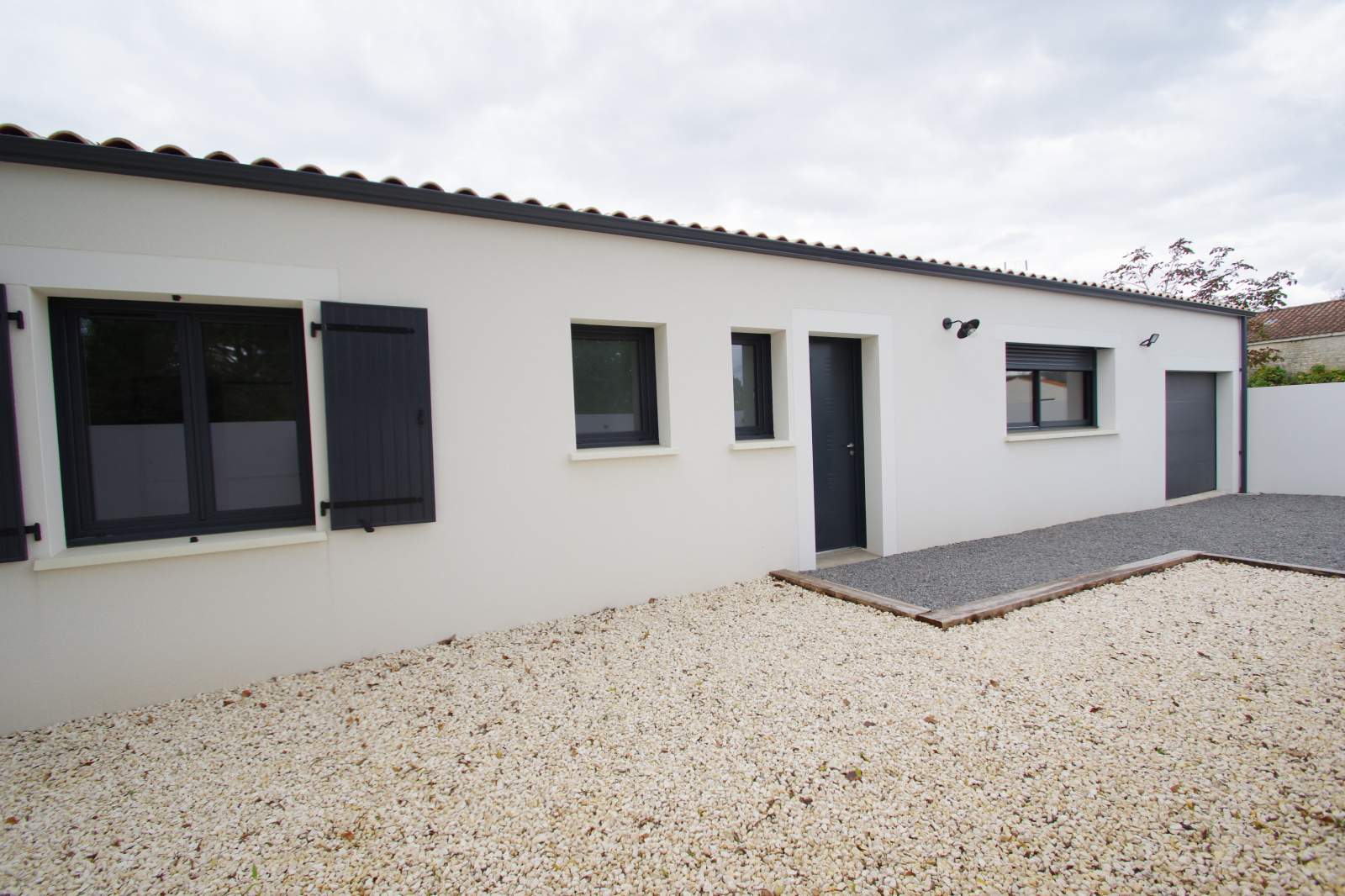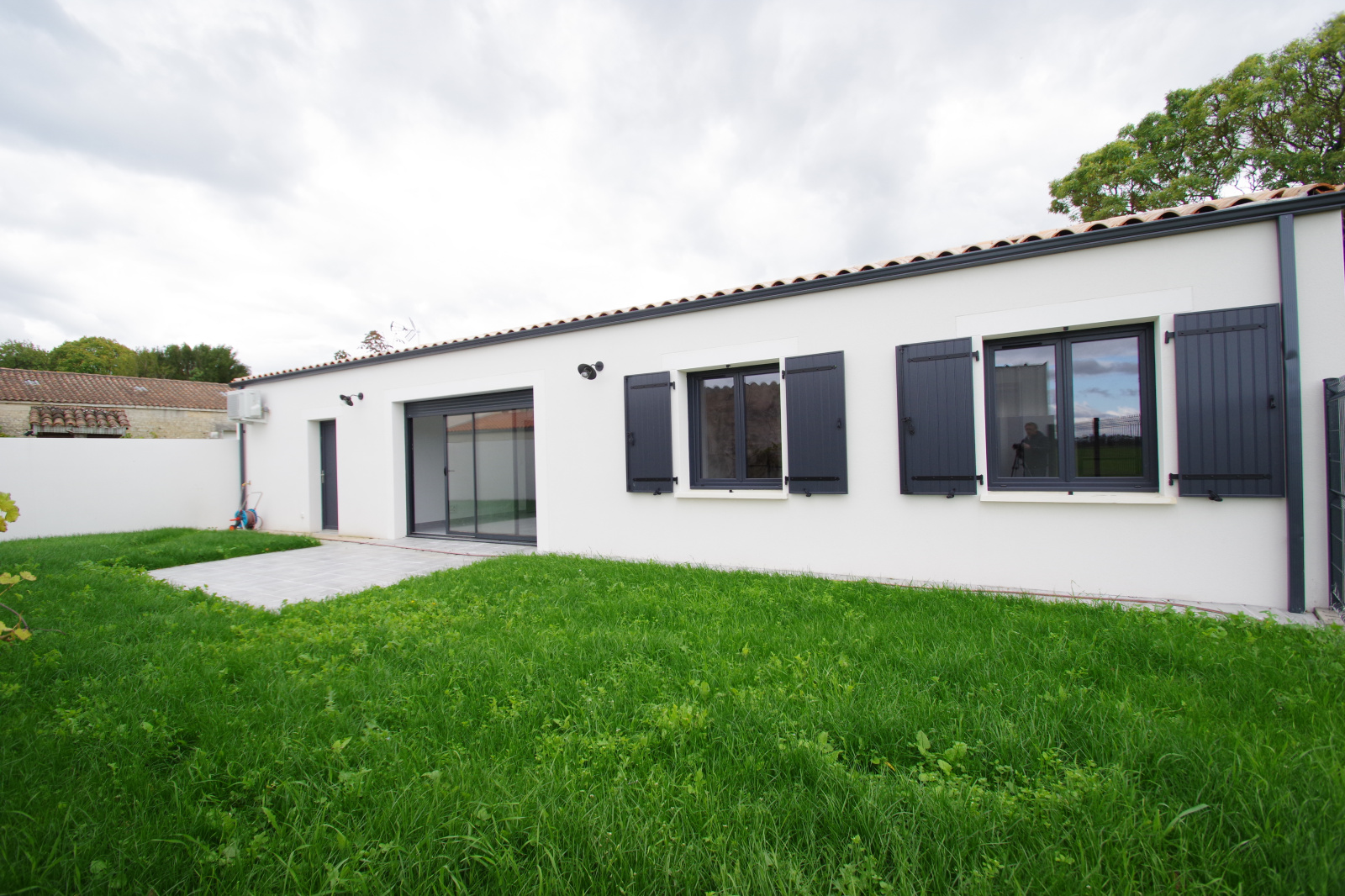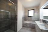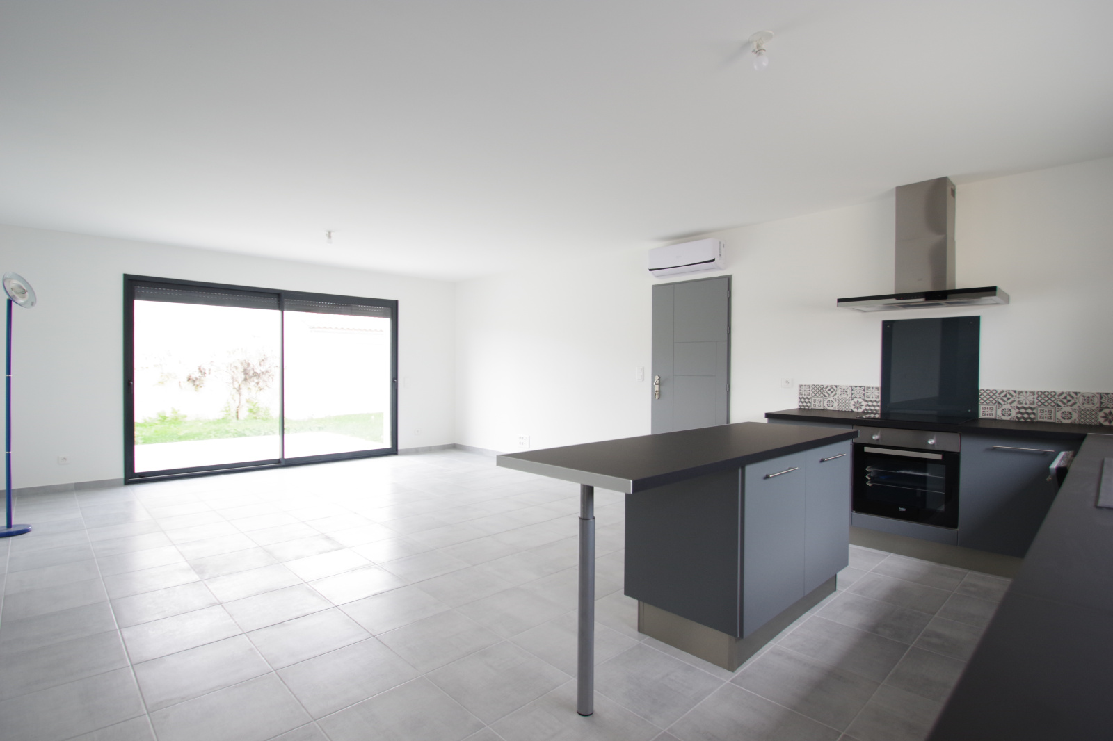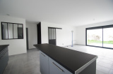 Très jolie maison neuve (jamais habitée) hors lotissement offrant : entrée (placard), WC, pièce de vie de 40 m² avec cuisine US aménagée/équipée et ilot central, dégagement, 3 chambres avec placards, salle de bains (baignoire + douche) et garage de 25 m² avec porte électrique. Maison raccordée au tout à l'égout et bien équipée (clim réversible, portail électrique, visiophone). Le tout sur un terrain de 312 m² avec terrasse.
