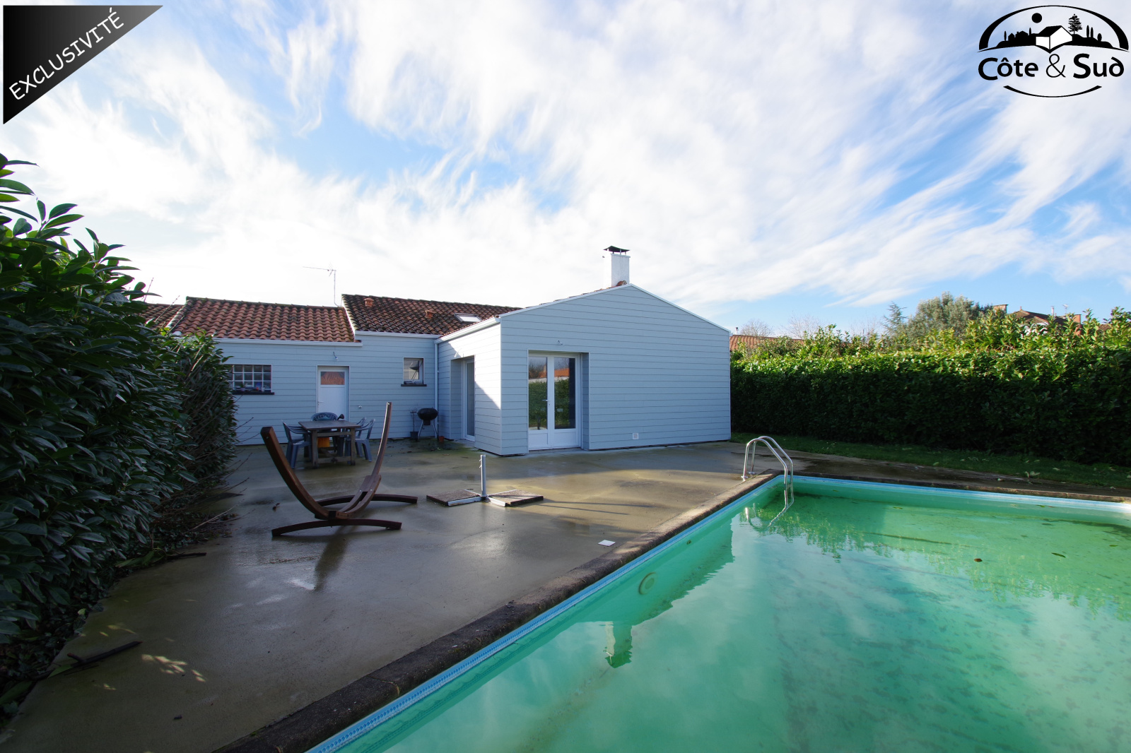 Exclusivité pour cette maison idéalement située à proximité des commerces comprenant : entrée, WC, cuisine US aménagée/équipée, pièce de vie avec poêle à granule, 2 chambres avec placards intégrés, un bureau avec placard, garage de 25 m² avec porte éléctrique, piscine 8x4, le tout sur 788 m² de terrain clos.