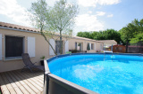 A proximité des commerces et écoles, pavillon de plain-pied en très bon état comprenant : entrée sur belle pièce de vie avec poêle à bois, cuisine US A/E, buanderie, WC, SDB avec douche et baignoire, dégagement, 3 chambres avec placard intégré, garage (24 m²), piscine hors sol, abri de jardin .Chauffage poêle à bois + convecteurs a inertie, isolation refaite, moustiquaire aux fenêtres. Pas de vis-à-vis. Le tout sur 360 m² de terrain.