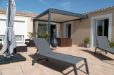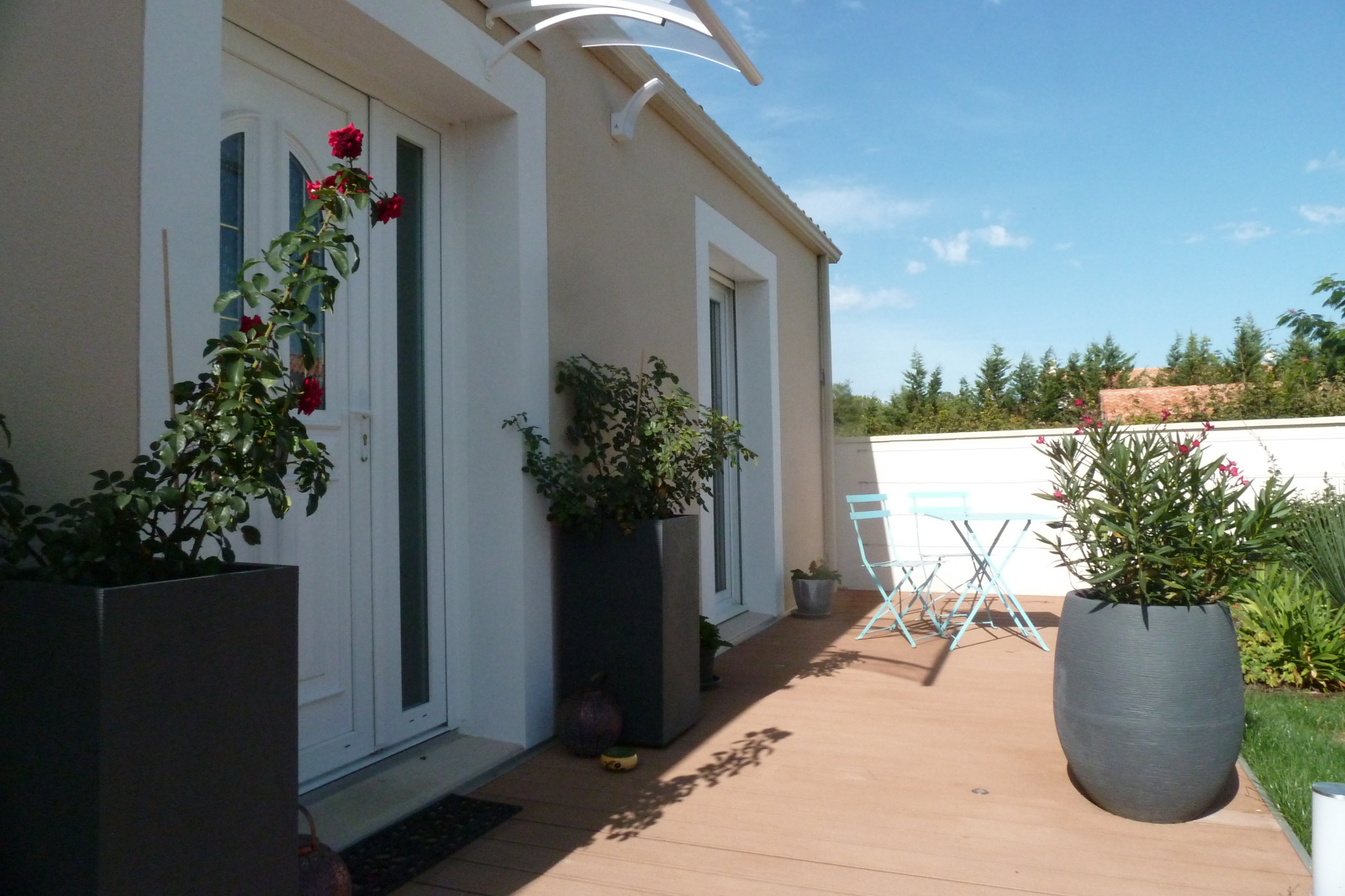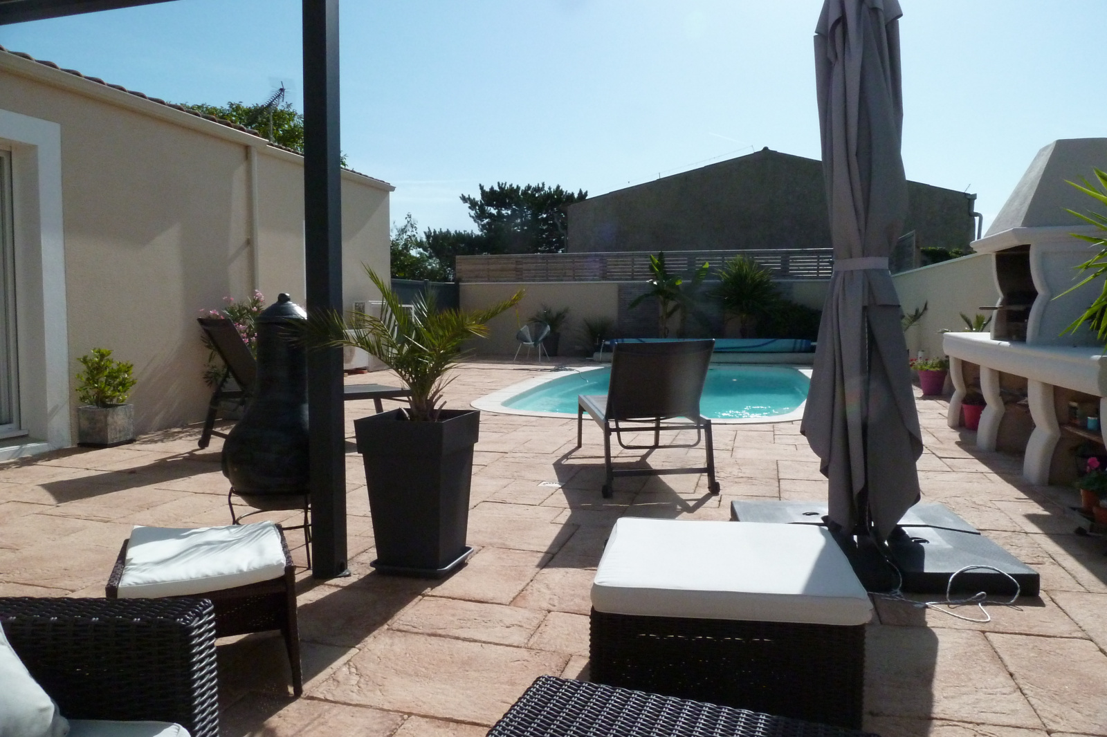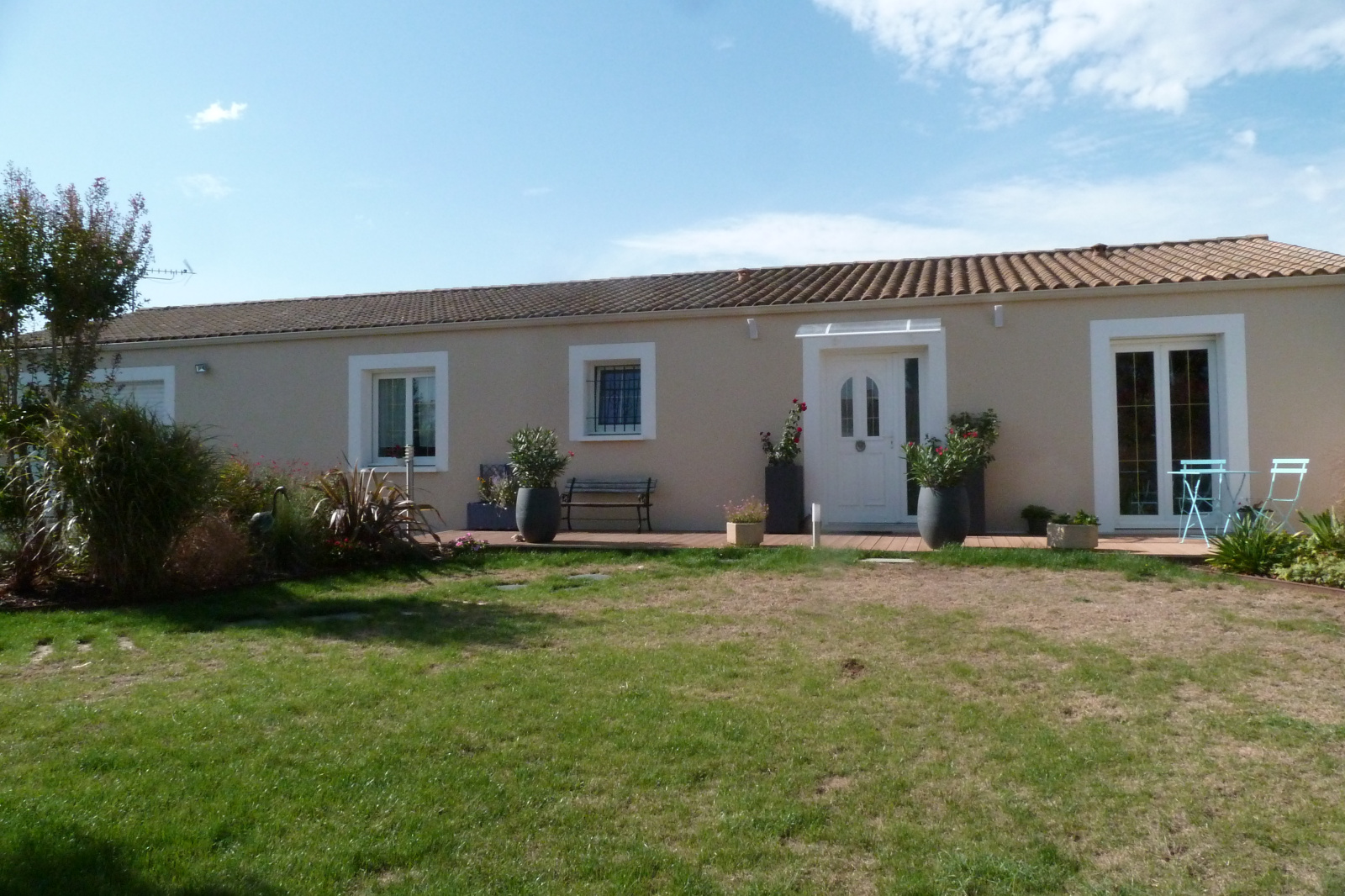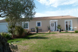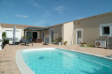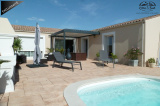 Proche commerces et commodités, belles prestations pour cette maison de plain-pied comprenant : hall d'entrée, vaste pièce de vie avec cuisine US aménagée / équipée, dégagement, WC (lave-mains), salle de bains avec baignoire d'angle et douche italienne, 3 belles chambres équipées de placards ou dressing, arrière-cuisine / buanderie, garage de 46 m² avec WC et cave. Chauffage au sol par PAC. Piscine chauffée (4 x 8), pergola bioclimatique, chalet bois aménagé en studio, le tout sur 986 m² de terrain clos avec forage et arrosage intégré.