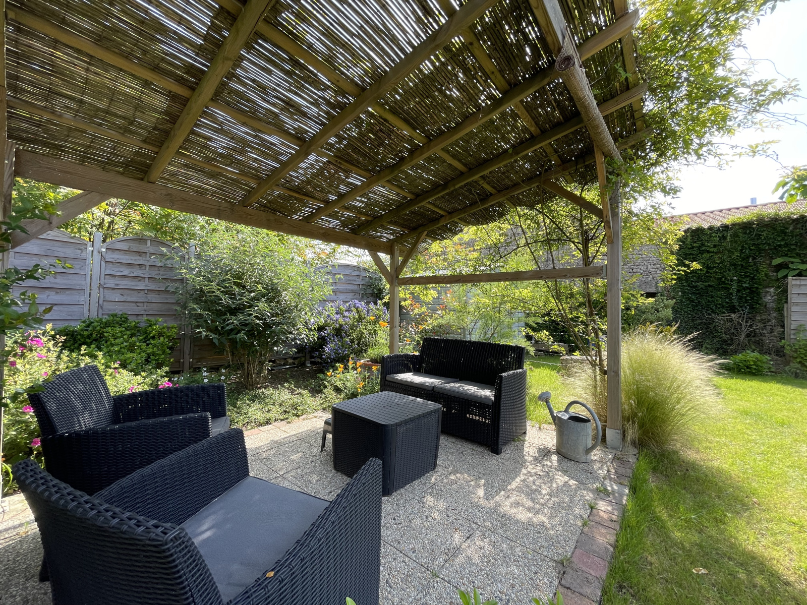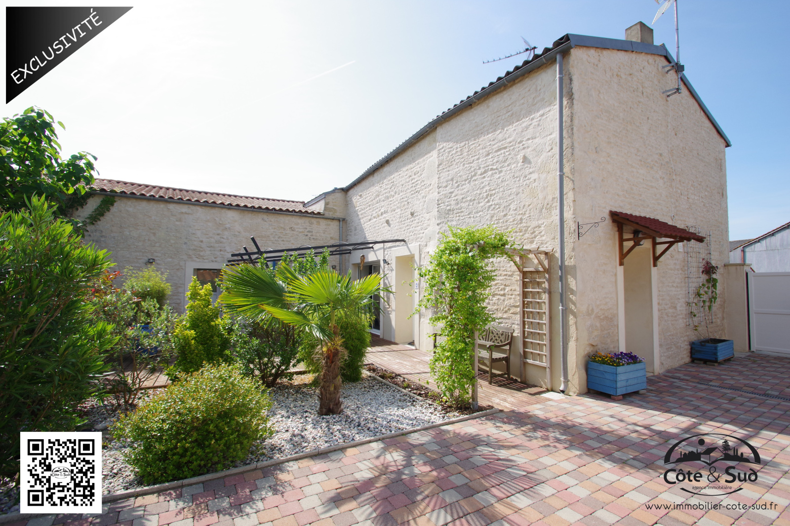 A l'exterieur : atelier, petit chai, belle trerrasse bois, le tout sur une parcelle de 500 m² paysagé à l'abri des regards. Portail éléctrique, cour pouvant accueillir 3 véhicules.