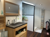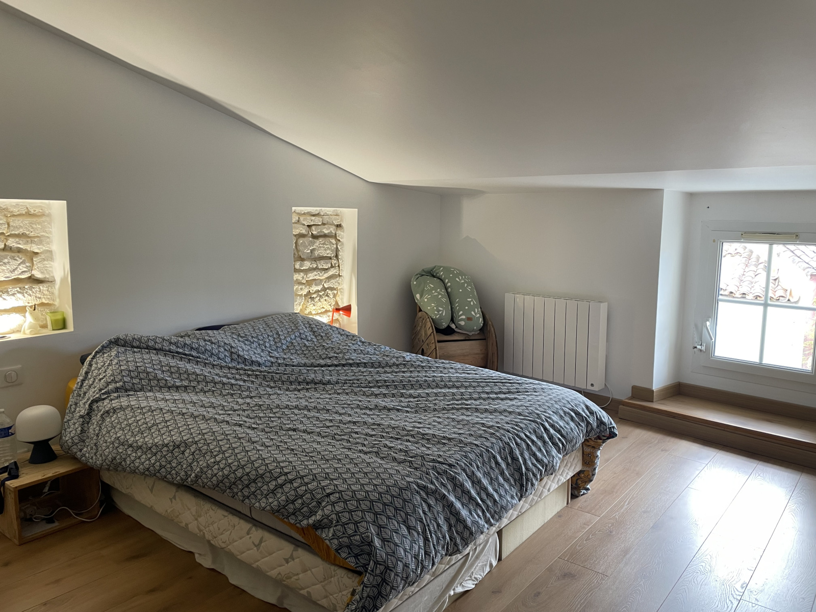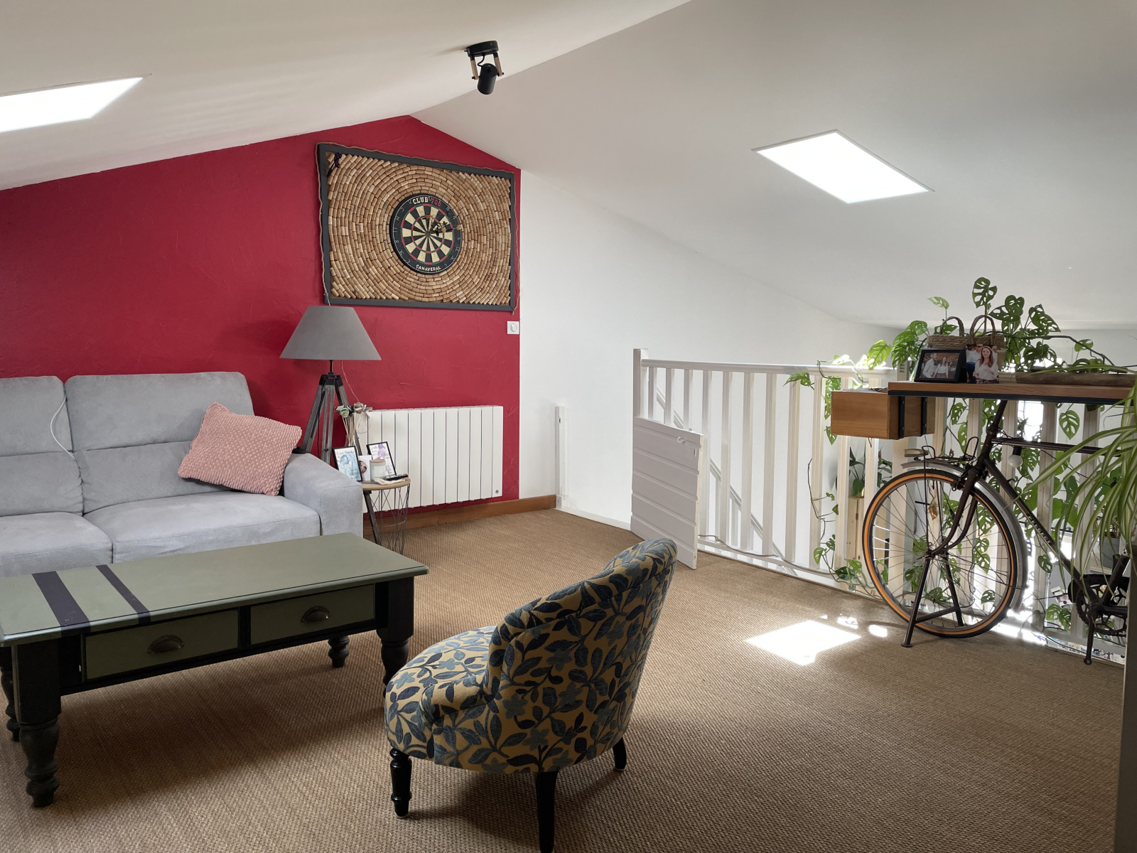 A l'étage , une belle mezzanine pouvant faire office de salon ou bureau, 2 chambres avec rangements et salle d'eau + WC.