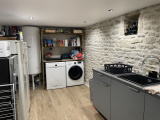 Proche commerces, école, médecins et toutes commodités, venez visiter cette maison "coup de coeur" pleine de charme comprenant : entrée sur pièce de vie avec poêle à granules et cuisine ouverte semi-équipée, dégagement avec pierres apparentes, WC, grande buanderie / cellier et garage.