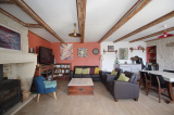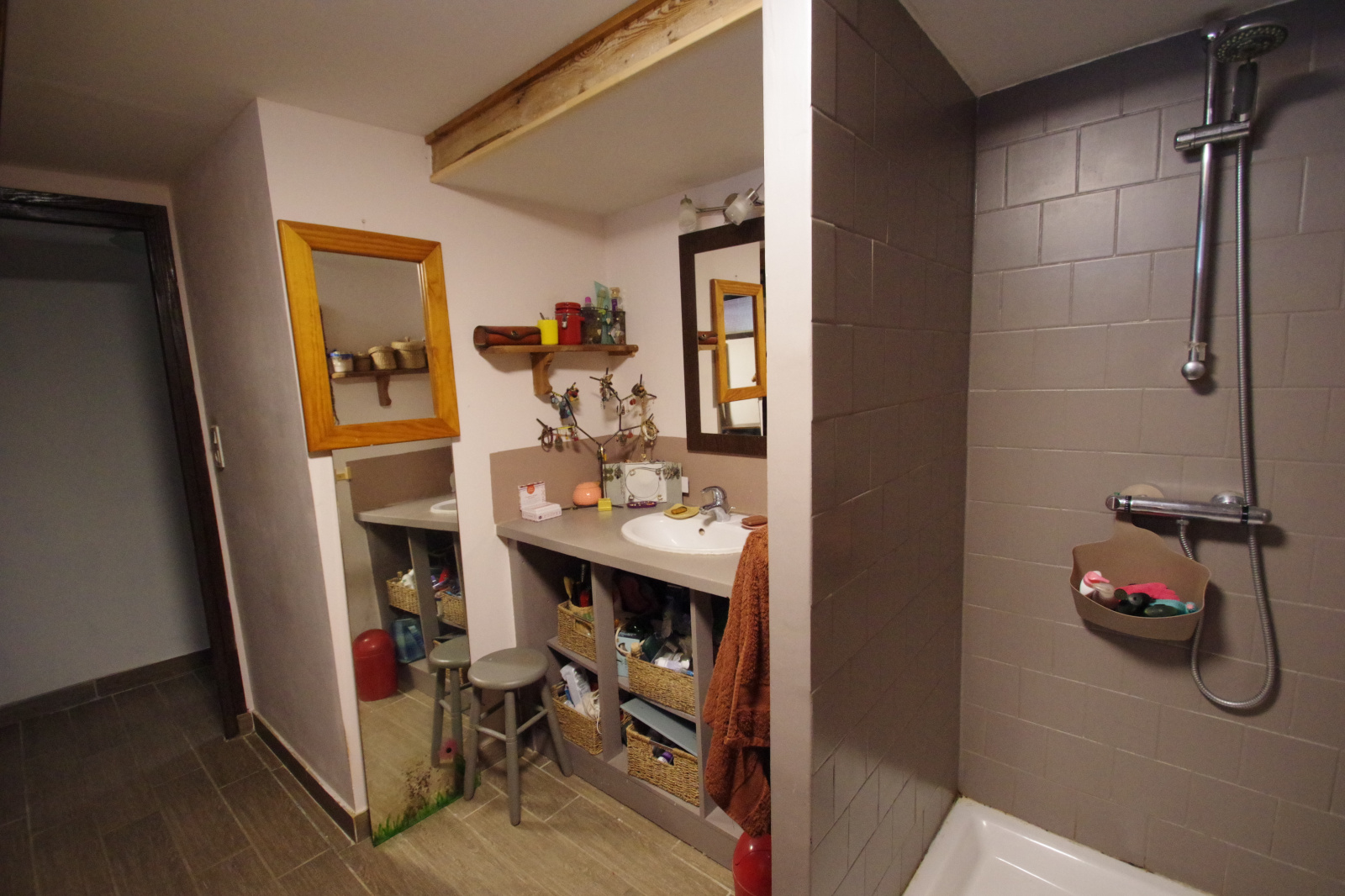 Maison ancienne comprenant : entrée sur piéce de vie avec poêle à bois, cuisine aménagée / équipée semi-ouverte, WC, salle d'eau, une chambre ouvrant sur une courette de 22 m².