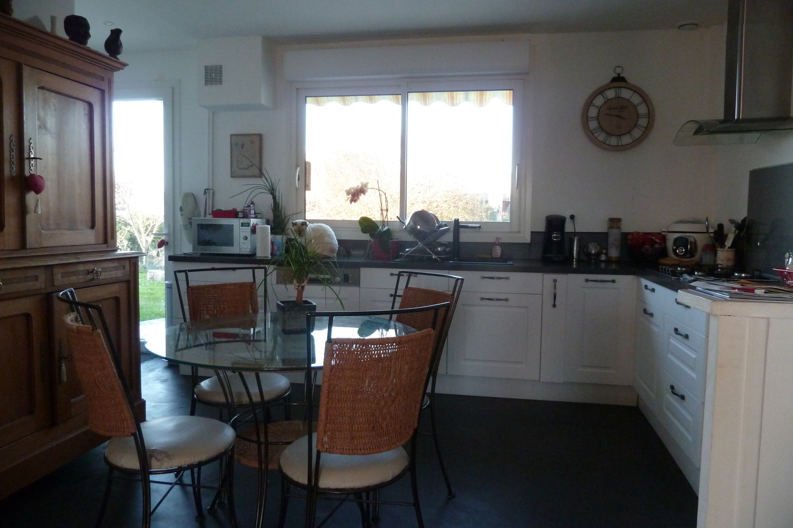 EN EXCLUSIVITE, Agréable et lumineuse maison individuelle comprenant : grande cuisine aménagée / équipée, salon-séjour, dégagement, 4 chambres avec placards, salle de bains (douche et baignoire), WC et garage de 26 m² avec cave. Le tout sur un terrain de 584 m². Chauffage gaz de ville (chaudière neuve), proche commerces, collège et transports.