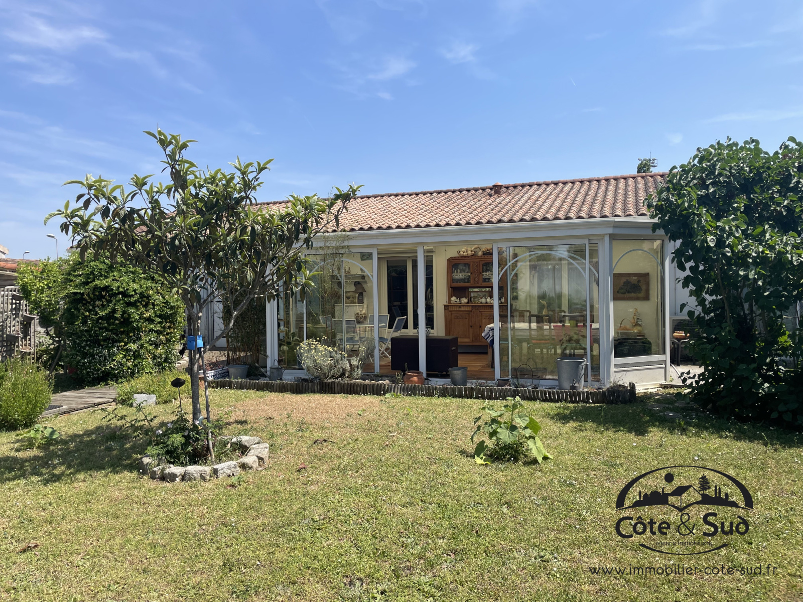 EN EXLUSIVITE, Proche commerces, collège, transports etc...Venez découvrir cette agréable maison de plain-pied comprenant : entrée (placard), WC, salle d'eau, belle pièce de vie avec cuisine US aménagée et équipée donnant sur une véranda, cellier/buanderie. Le coin nuit propose 3 chambres dont une avec sa salle d'eau + WC. A l'extérieur, un atelier et un auvent de 25 m² pour voiture. Le tout sur un joli terrain arboré d'environ 600 m².