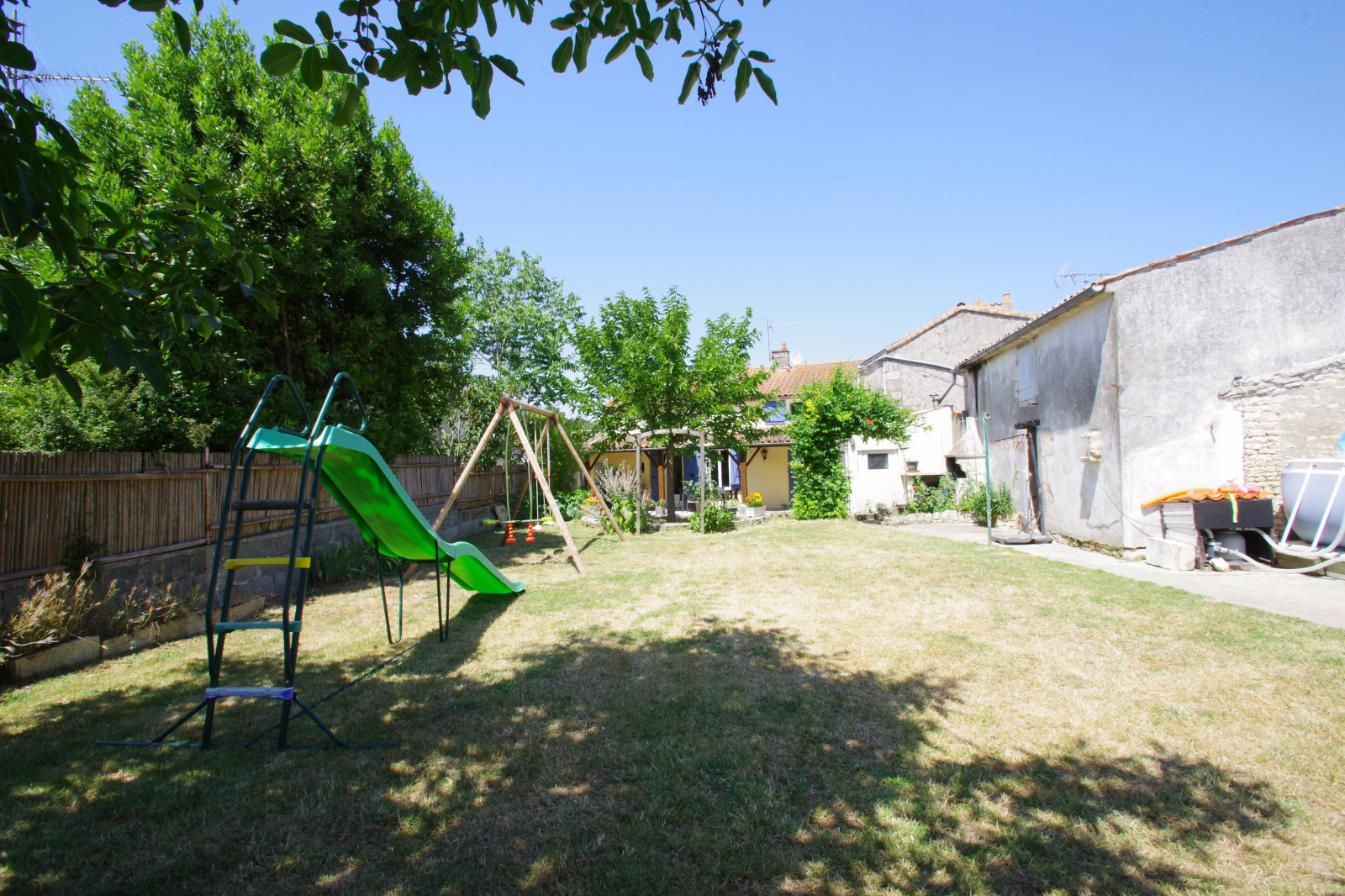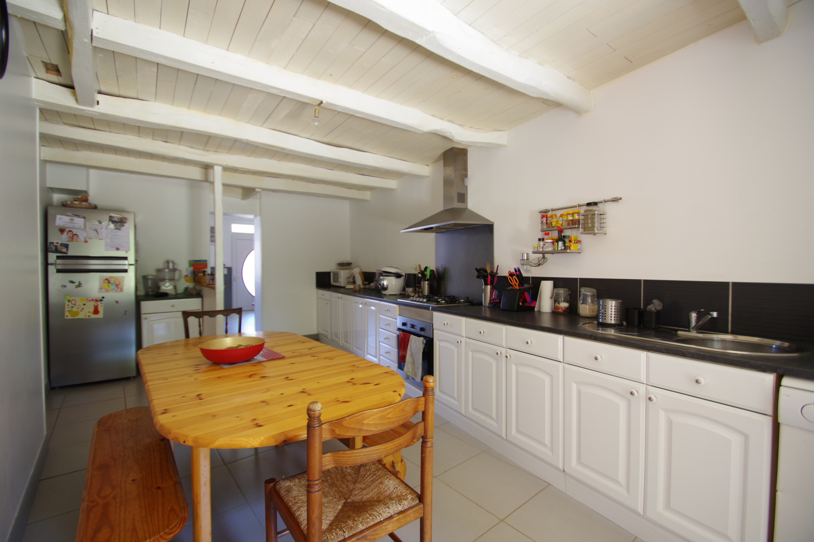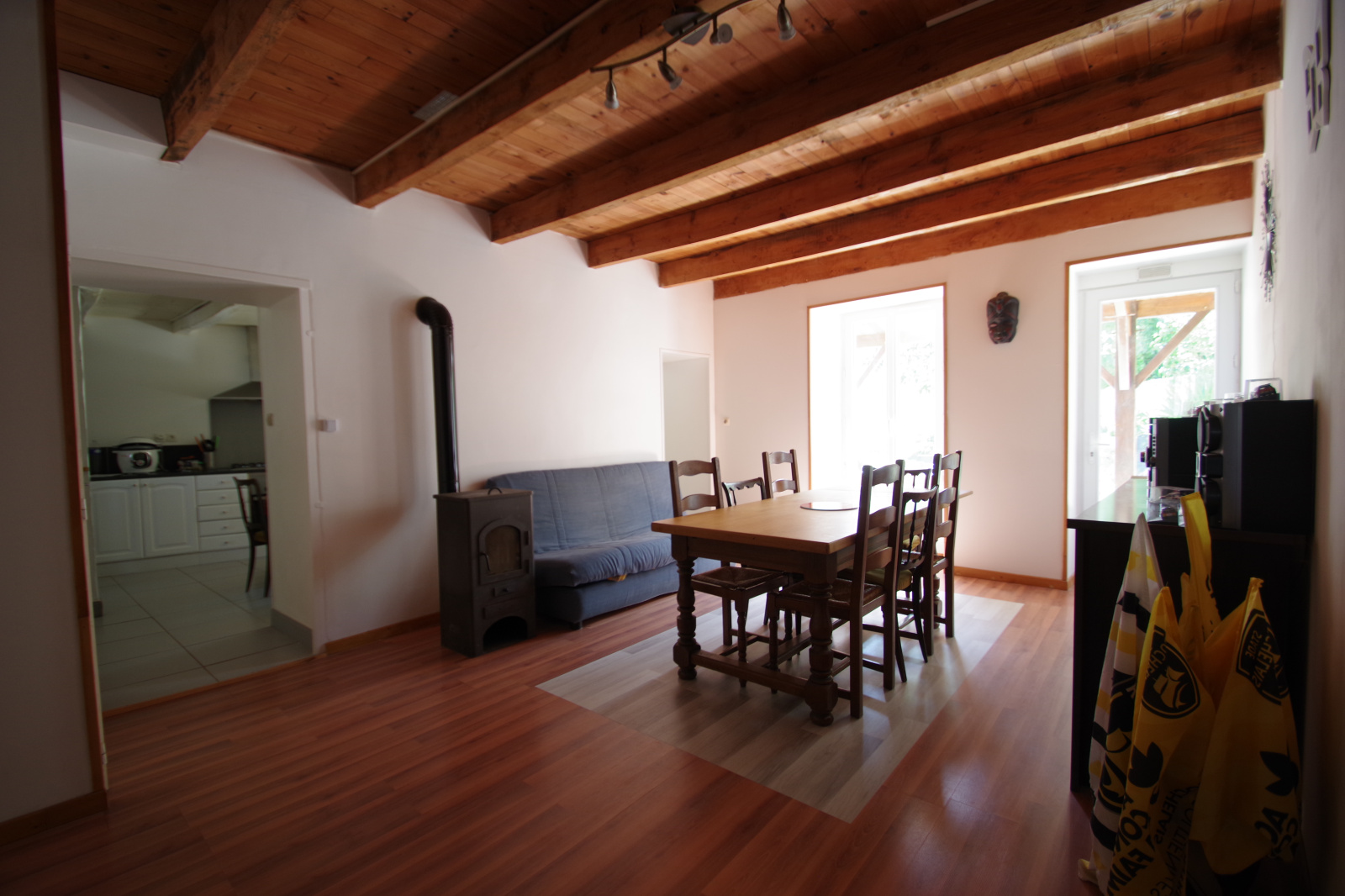 Maison ancienne comprenant entrée sur salon avec poêle à bois, salle à manger avec poêle à bois, cuisine A/E, chambre avec placard, salle d'eau, WC. A l'étage palier desservant 4 chambres. Buanderie, 1 chai de 20 m² avec étage, 1 garage, le tout sur 532 m² de terrain clos.