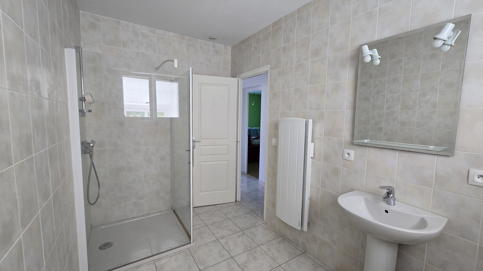 Pavillon de Plain-Pied comprenant entrée sur salon séjour avec cuisine US aménagée équipée poêle à granule, dégagement nuit, 3 chambres avec placards intégrés, wc, salle d'eau, véranda avec poêle à bois, piéce pouvant faire office de buanderie. Le tout sur une parcelle de 1230 m². Ouverture double vitrage PVC, Isolation par l'extérieure.
