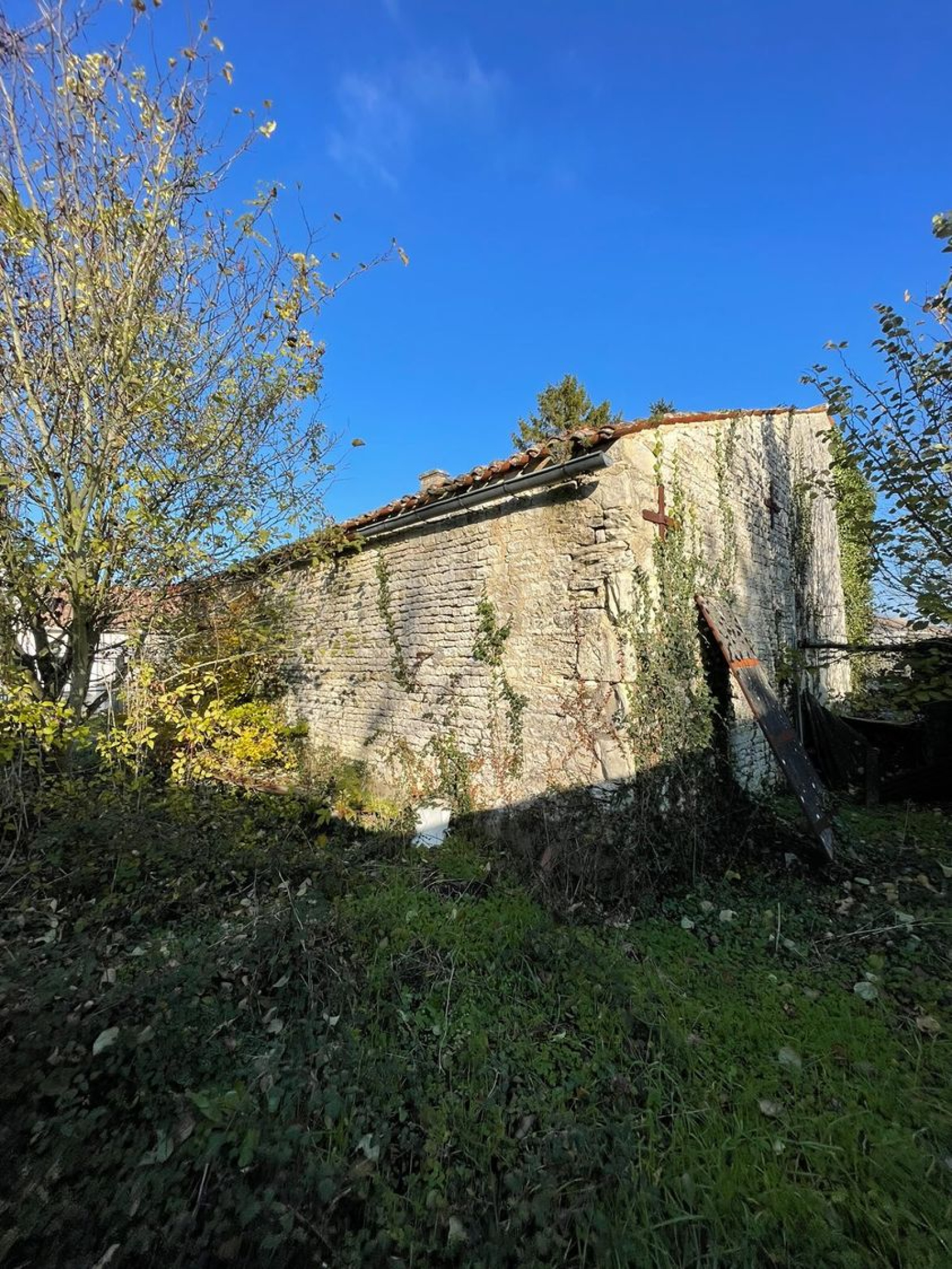 Commune de Bouhet : beau potentiel pour cette maison ancienne déjà viabilisée (eau, électricité et tout à l'égout) à rénover.