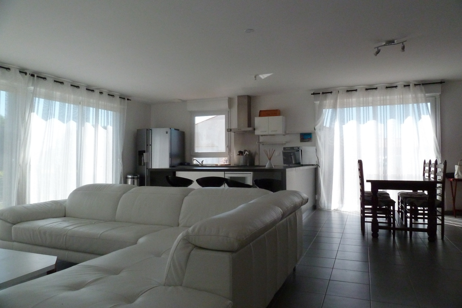 Pavillon récent comprenant entrée, belle pièce de vie (50 m²) avec cuisine US aménagée / équipée, WC, salle d'eau avec douche italienne, 2 chambres, garage, le tout sur 375 m² de terrain. Maison sous garantie "dommage ouvrage", chauffage au sol.