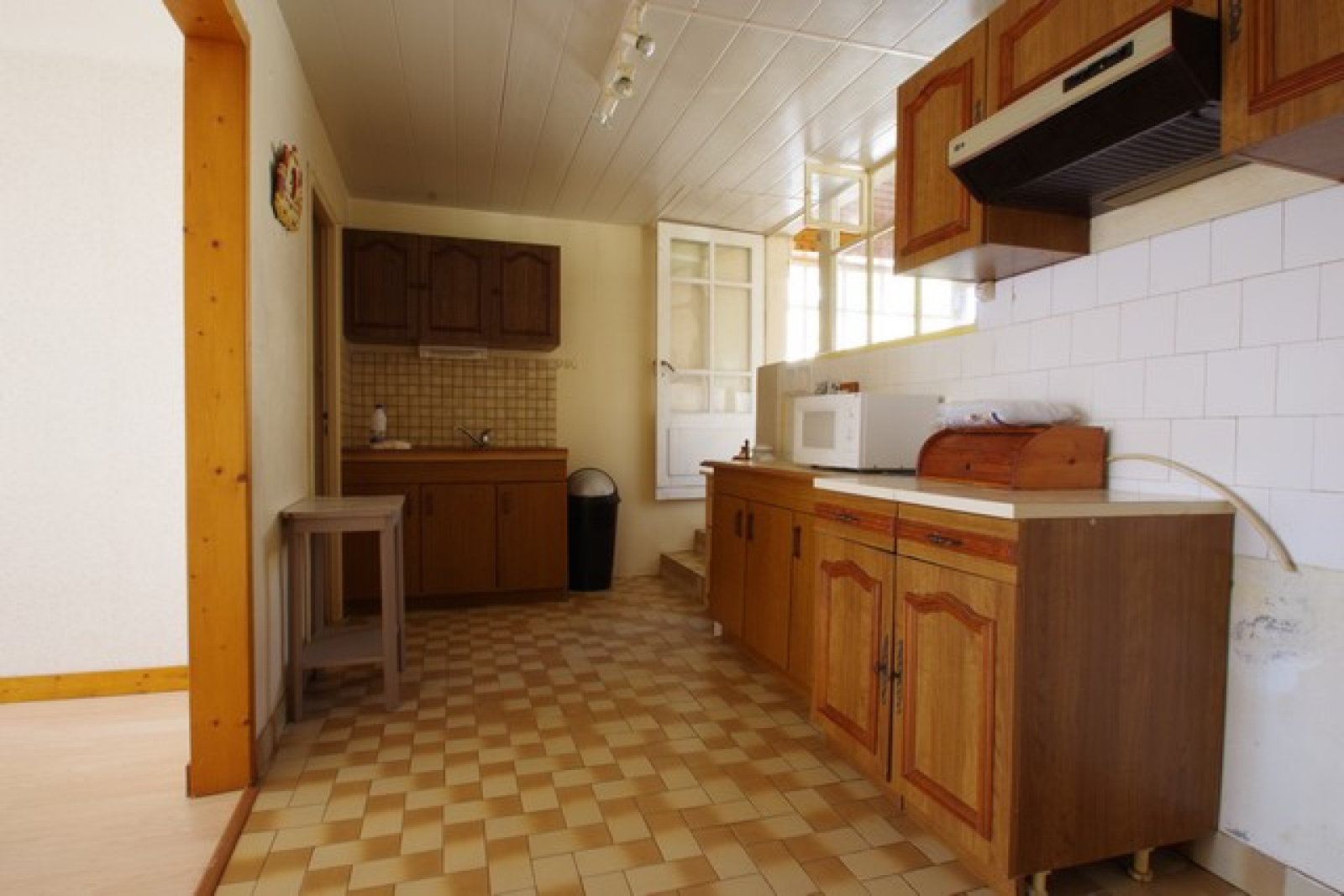 En Exclusivité à proximité des commerces, maison comprenant entrée, salon, séjour, cuisine semi ouverte, WC, véranda ouvrant sur une cour intérieure. A l'étage palier desservant 3 chambres, une salle d'eau avec WC. Non attenant à la maison, terrain de 90 m² environ et un garage en pierre de 40 m².