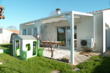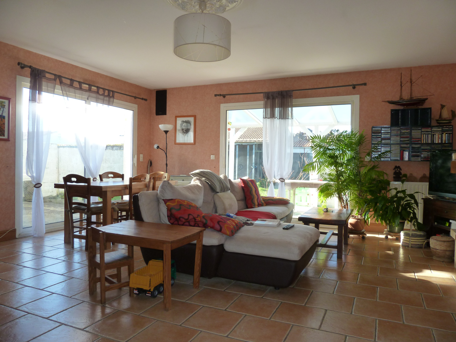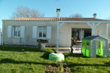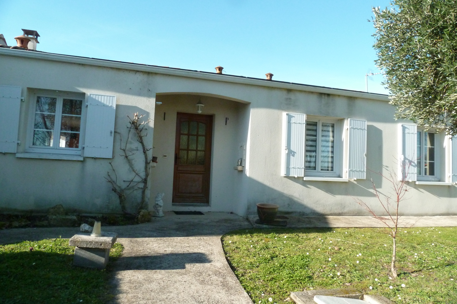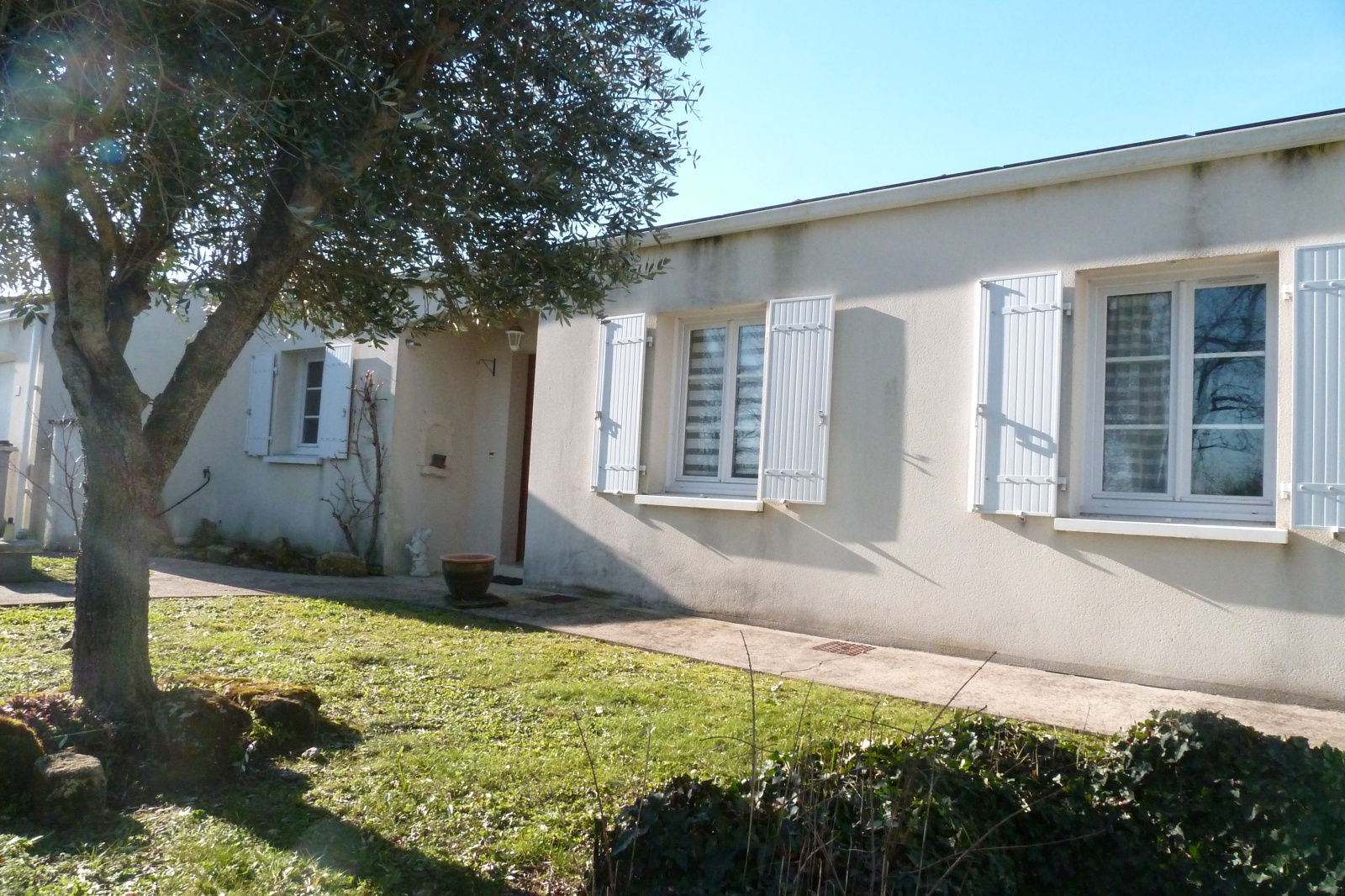 Au calme, maison de plain-pied édifiée sur 540 m² de terrain clos comprenant : entrée (placard), pièce vie lumineuse avec cheminée et cuisine US aménagée / équipée, dégagement, dressing, 3 chambres, salle de bains (baignoire et douche), WC, cellier et garage de 18 m². Chauffage clim réversible, panneaux photovoltaïques (1000 € / an), terrasse avec pergola.