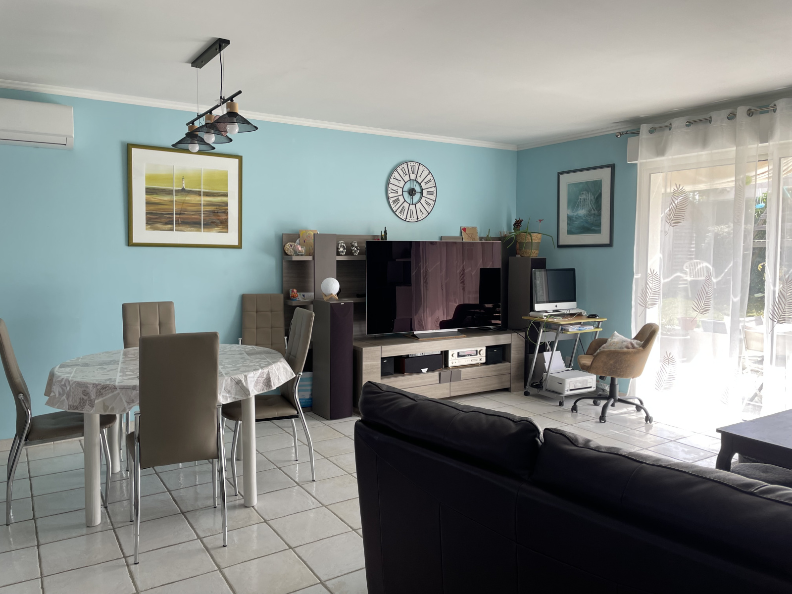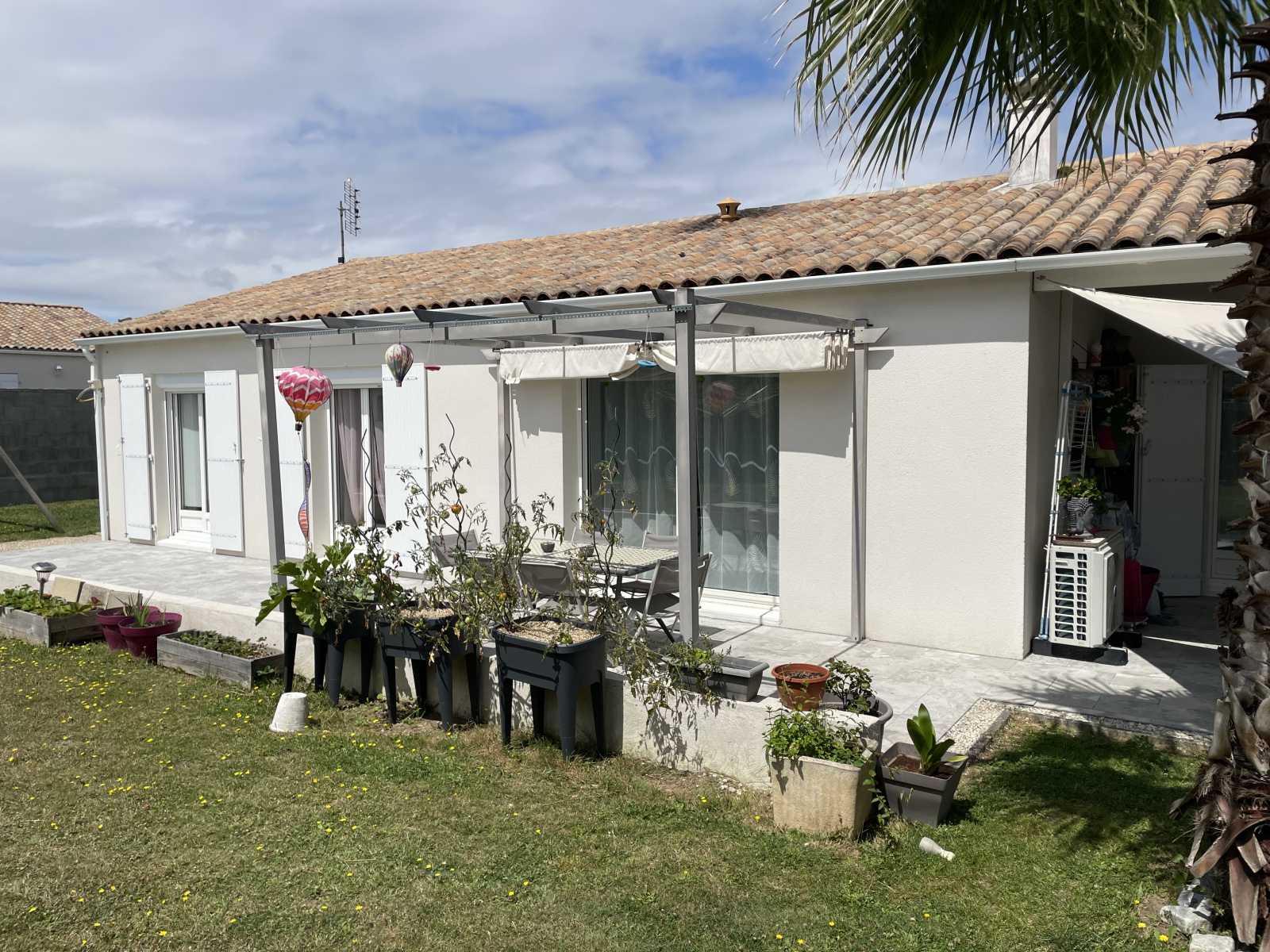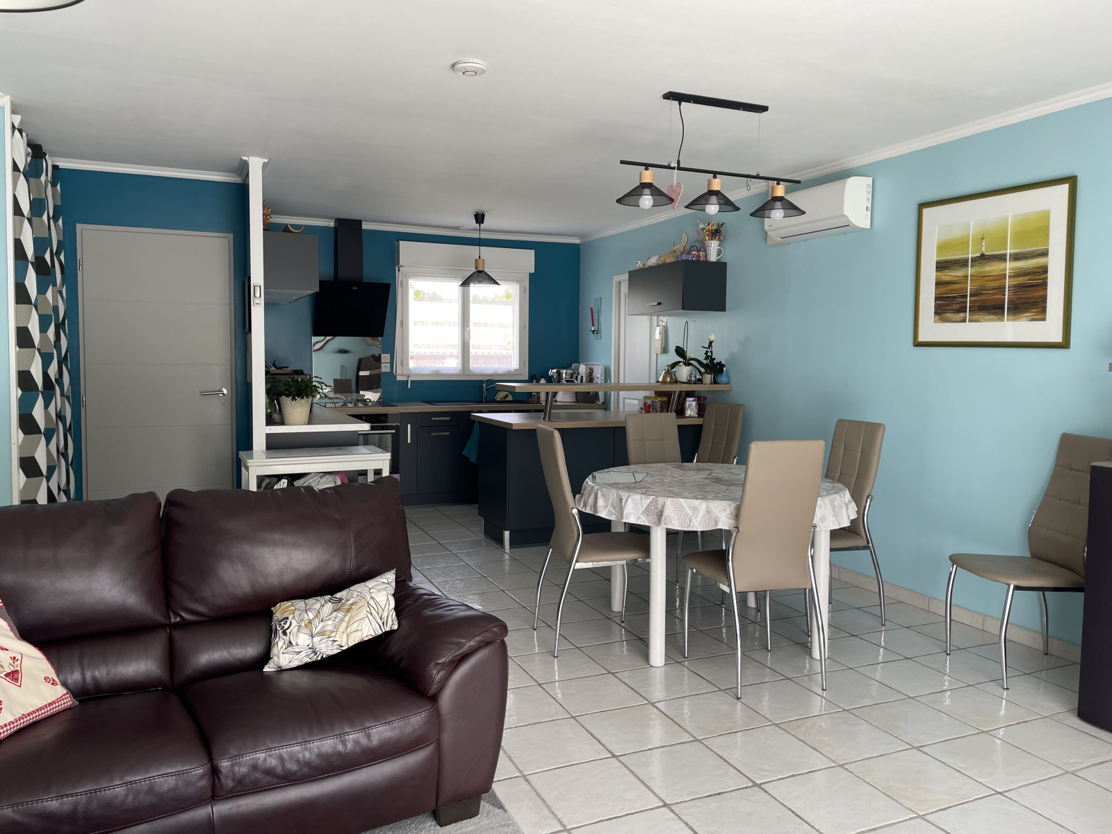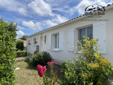 EN EXCLUSIVITE, Agréable maison de plain-pied non mitoyenne offrant : entrée, WC, pièce de vie exposée sud avec cuisine US aménagée / équipée, buanderie et vestiaire. Le coin nuit comprend un dégagement, 3 chambres, un bureau (ou 4è chambre, dressing ...) et une salle de bains. Chauffage clim réversible.