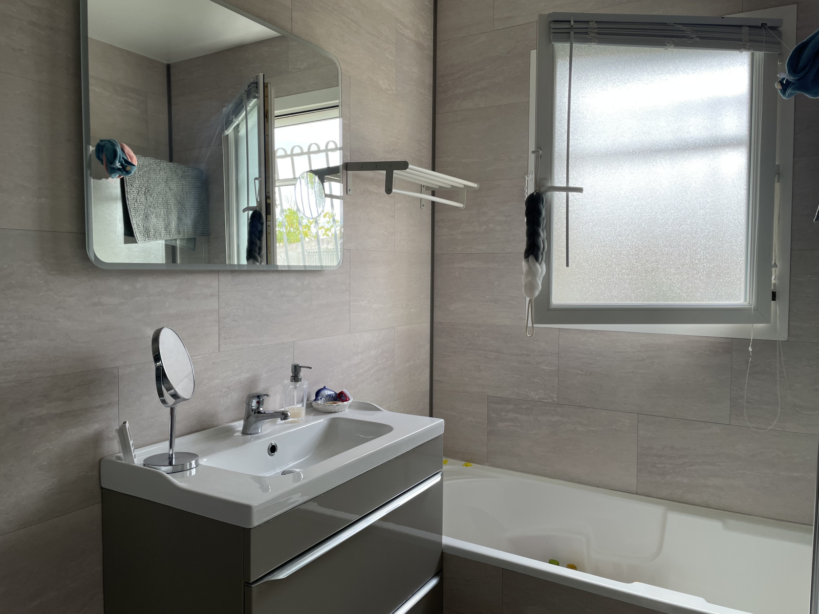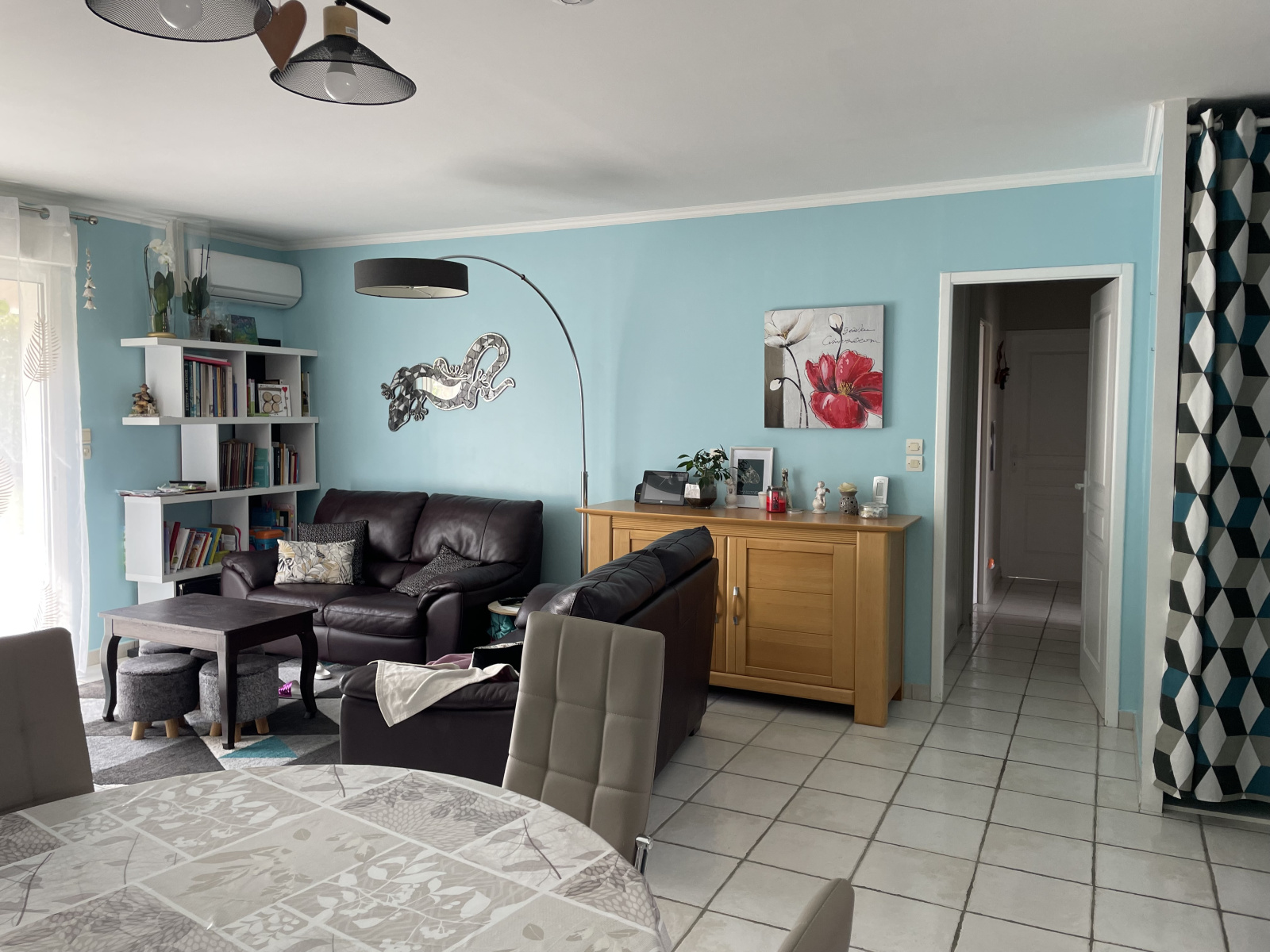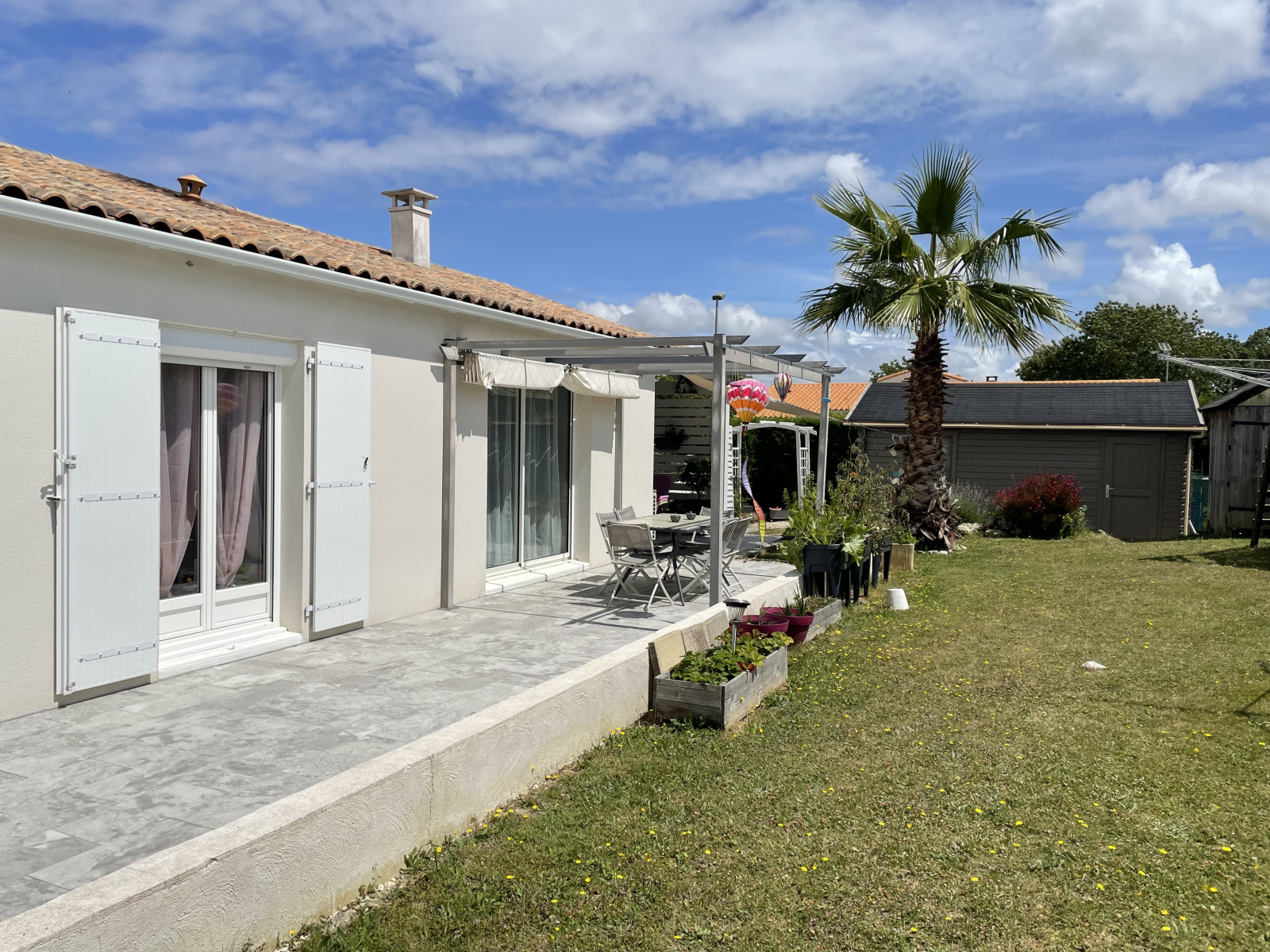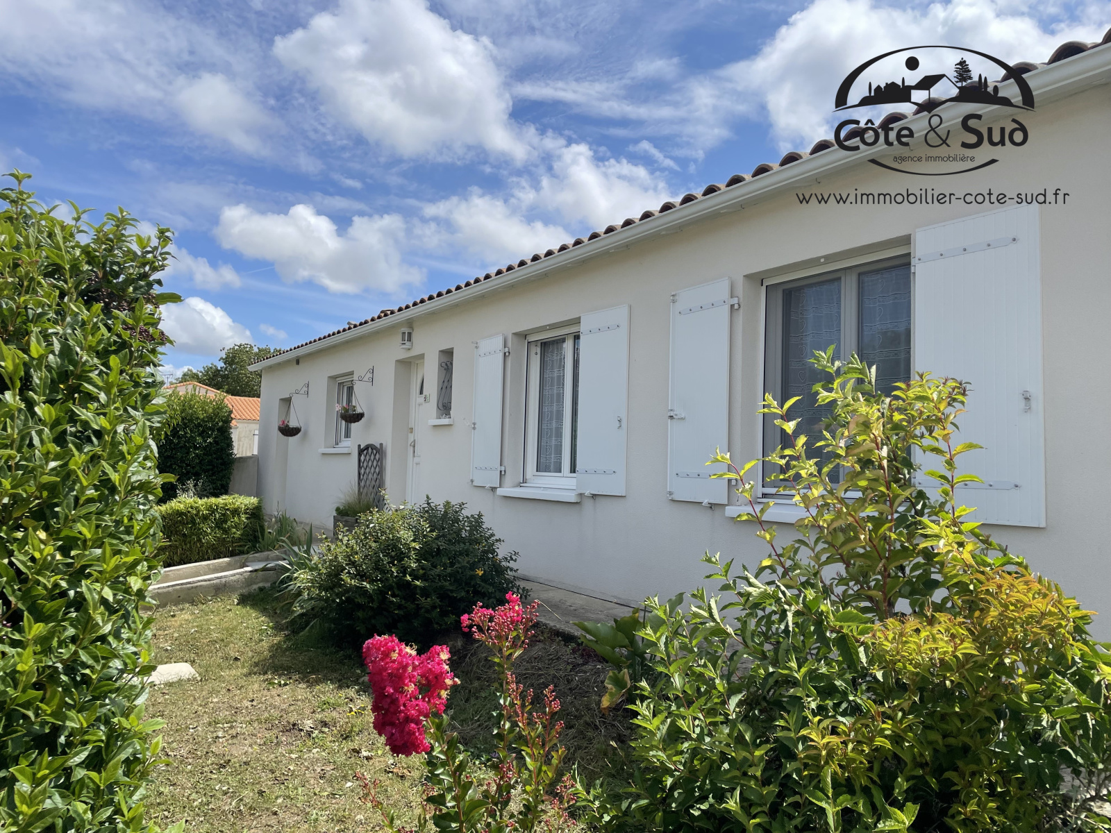EN EXCLUSIVITE, Agréable maison de plain-pied non mitoyenne offrant : entrée, WC, pièce de vie exposée sud avec cuisine US aménagée / équipée, buanderie et vestiaire. Le coin nuit comprend un dégagement, 3 chambres, un bureau (ou 4è chambre, dressing ...) et une salle de bains. Chauffage clim réversible.