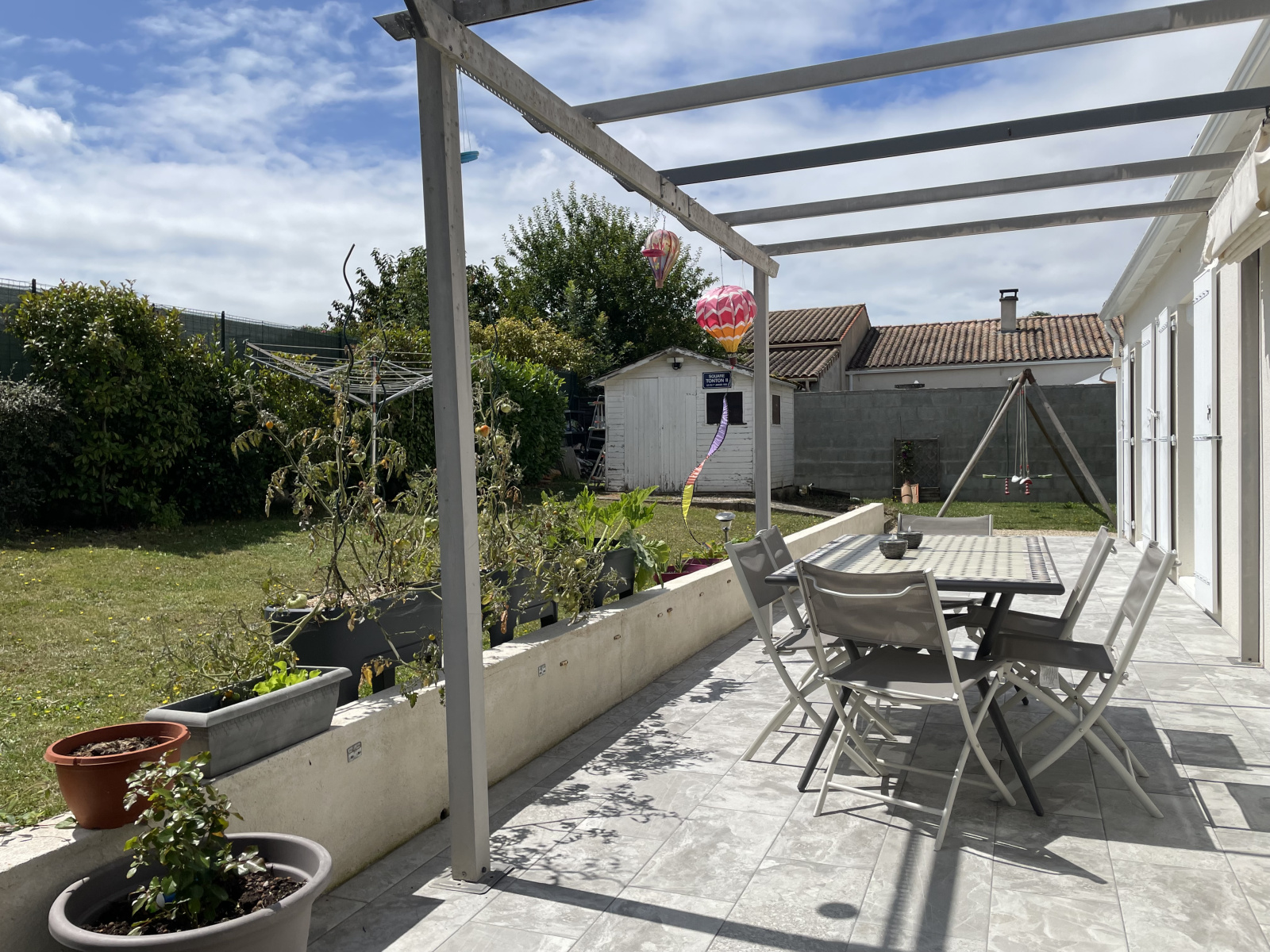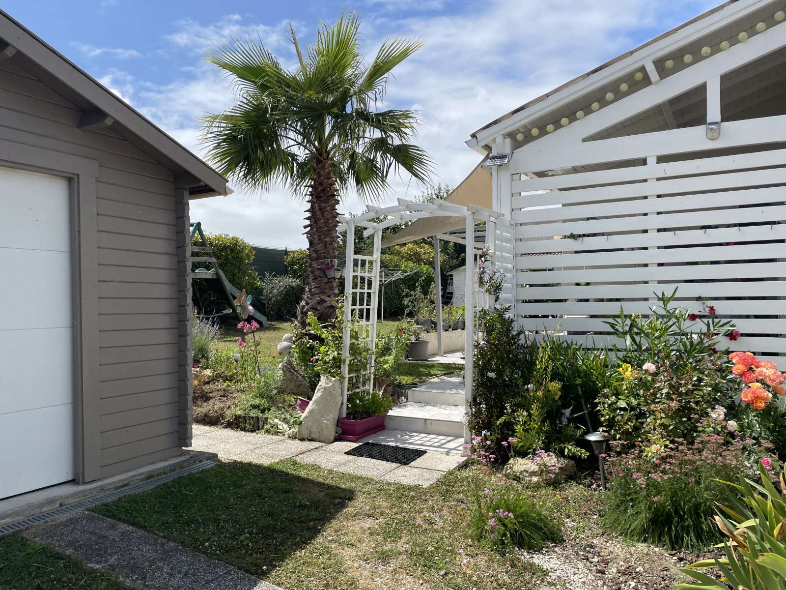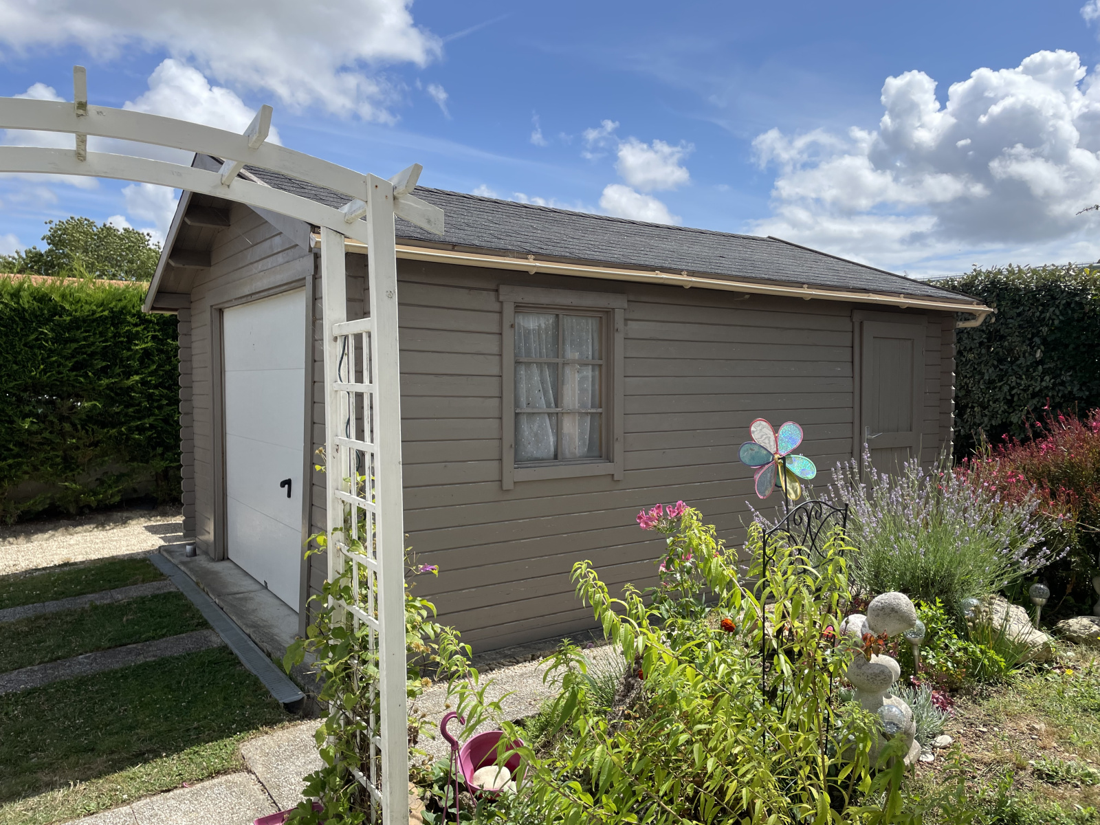 A l'extérieur, une terrasse avec pergola pour profiter du jardin ensoleillé, un garage en bois et un abri jardin. Le tout sur un joli terrain clos de 588 m².