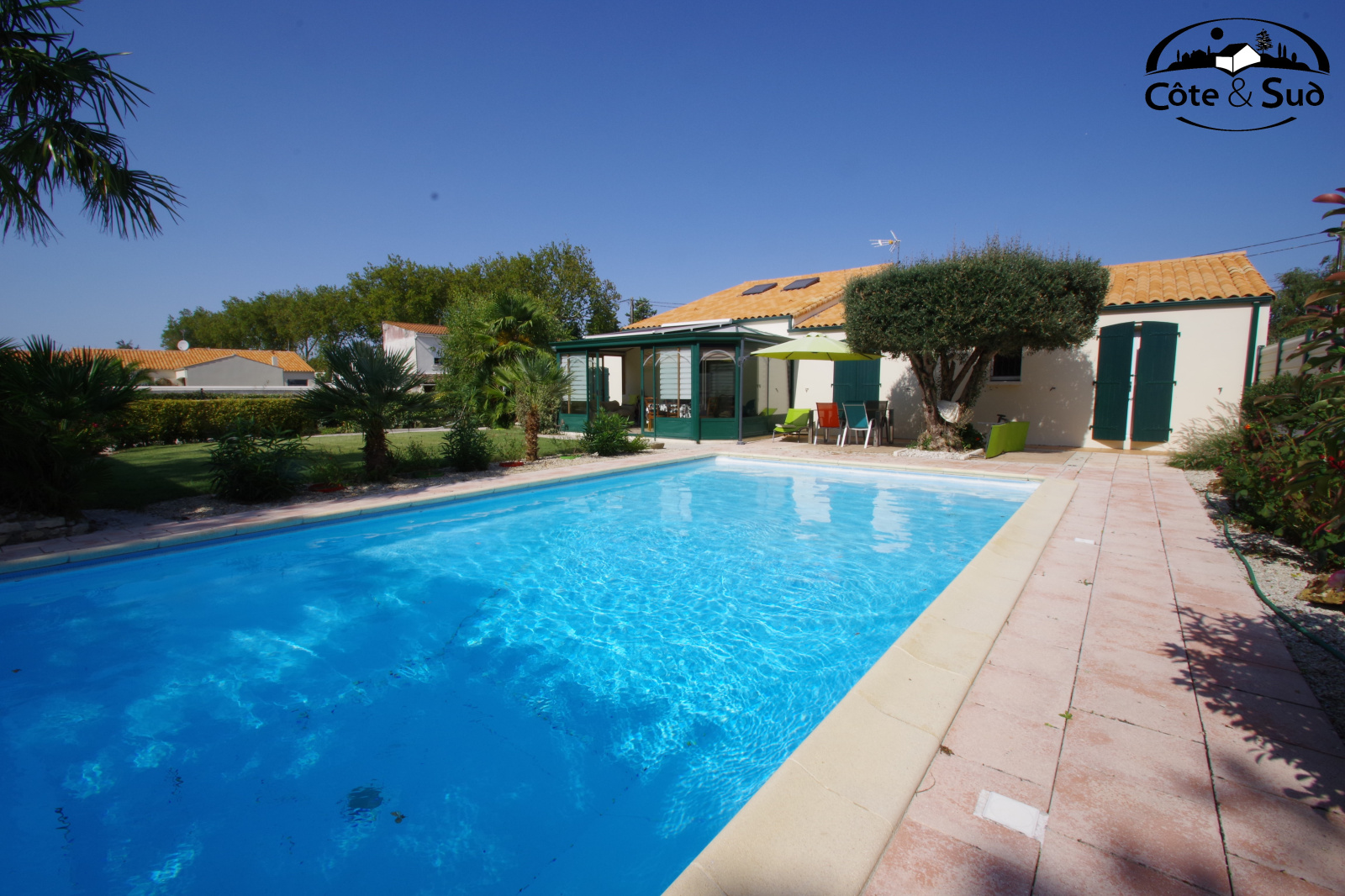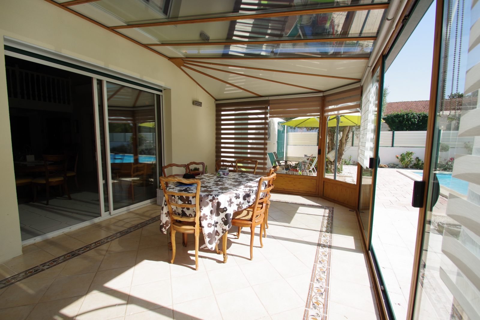 Trés belles prestations pour cette maison comprenant hall d'entrée avec dressing, cuisine A/E semi ouverte, arrière cuisne A/E, salon séjour ouvrant sur une véranda, mezzanine, dégagement, WC, salle de bains, dressing, 3 chambres avec placard et une suite parentale avec salle d'eau et WC. Non attenant à la maison, une dépendance qui comprend, 1 garage, 1 cuisine d'été, 1 studio. Piscine 5*10, terrasse, portail éléctrique, chauffage au sol avec pompe à chaleur, le tout sur 1140 m² de terrain clos. Produit à voir rapidement.