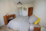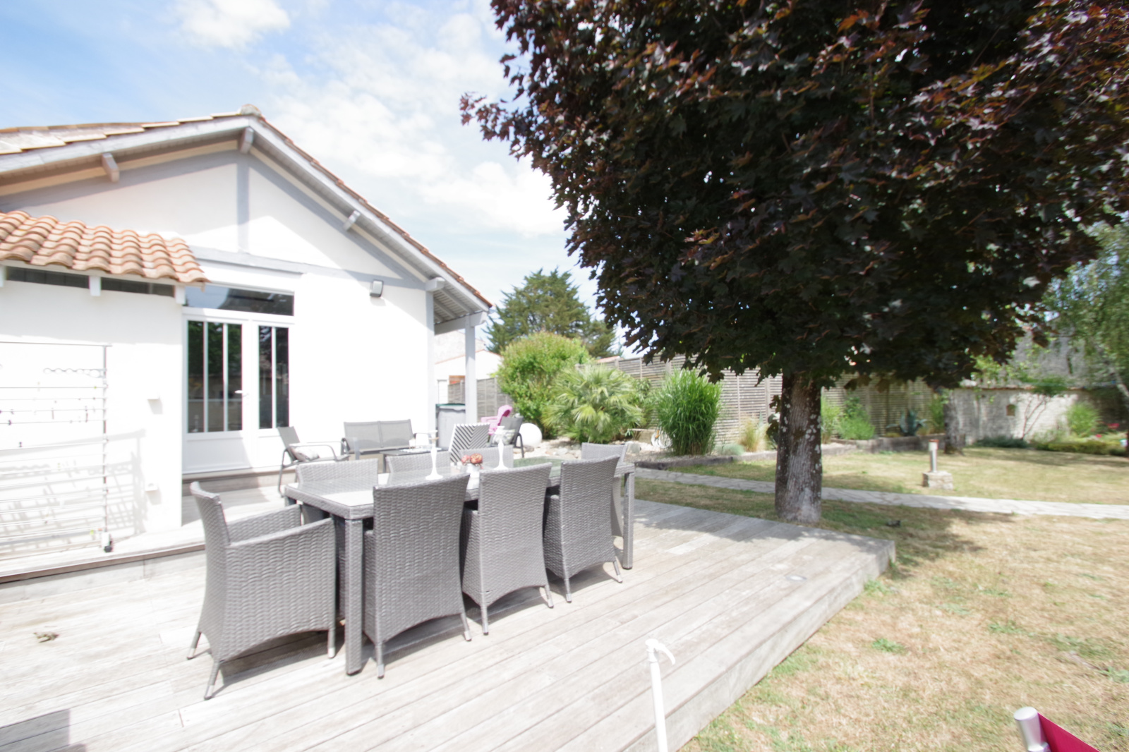 A l'extérieur, agréable jardin clos de murs avec terrasse en bois.