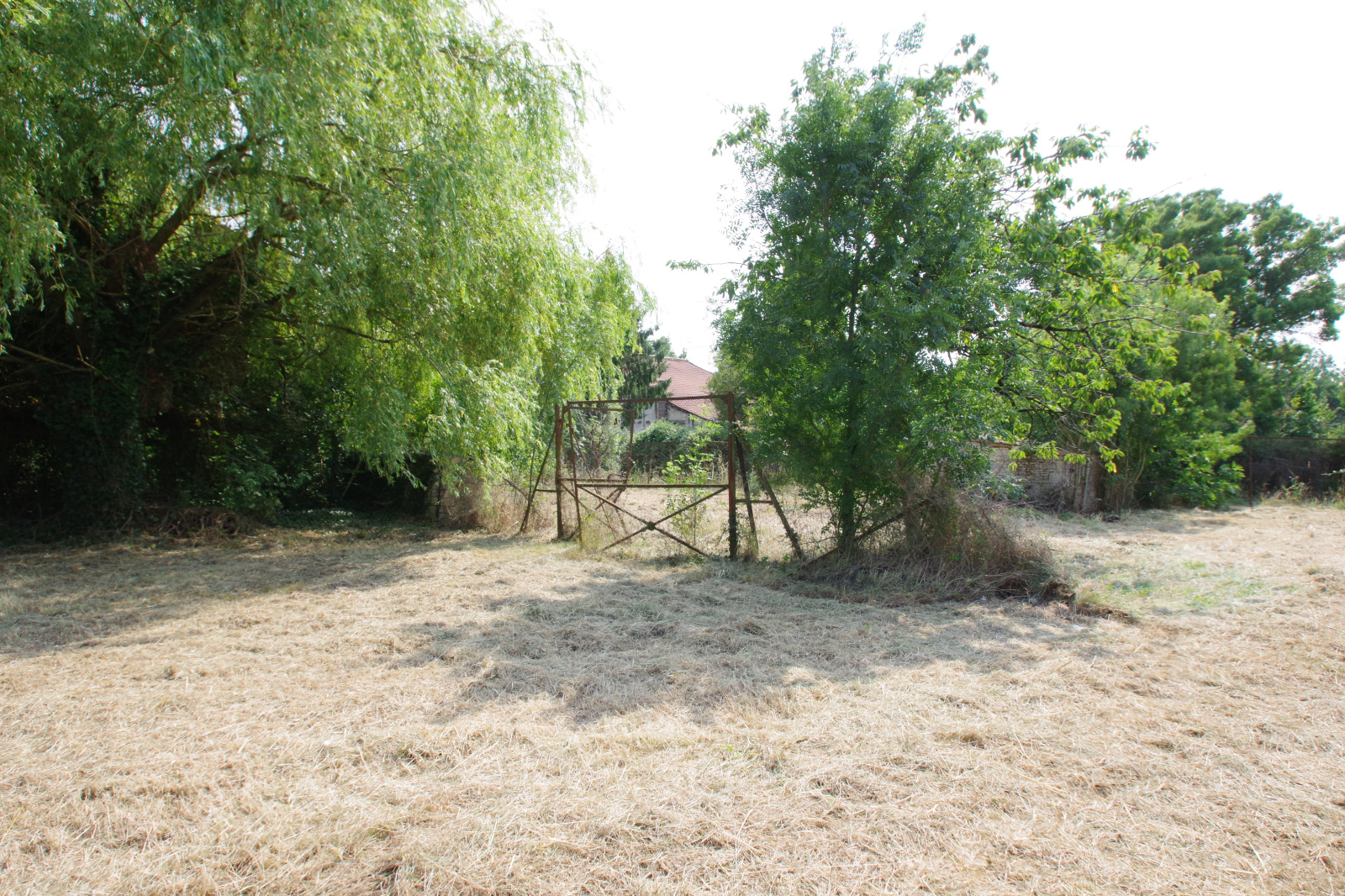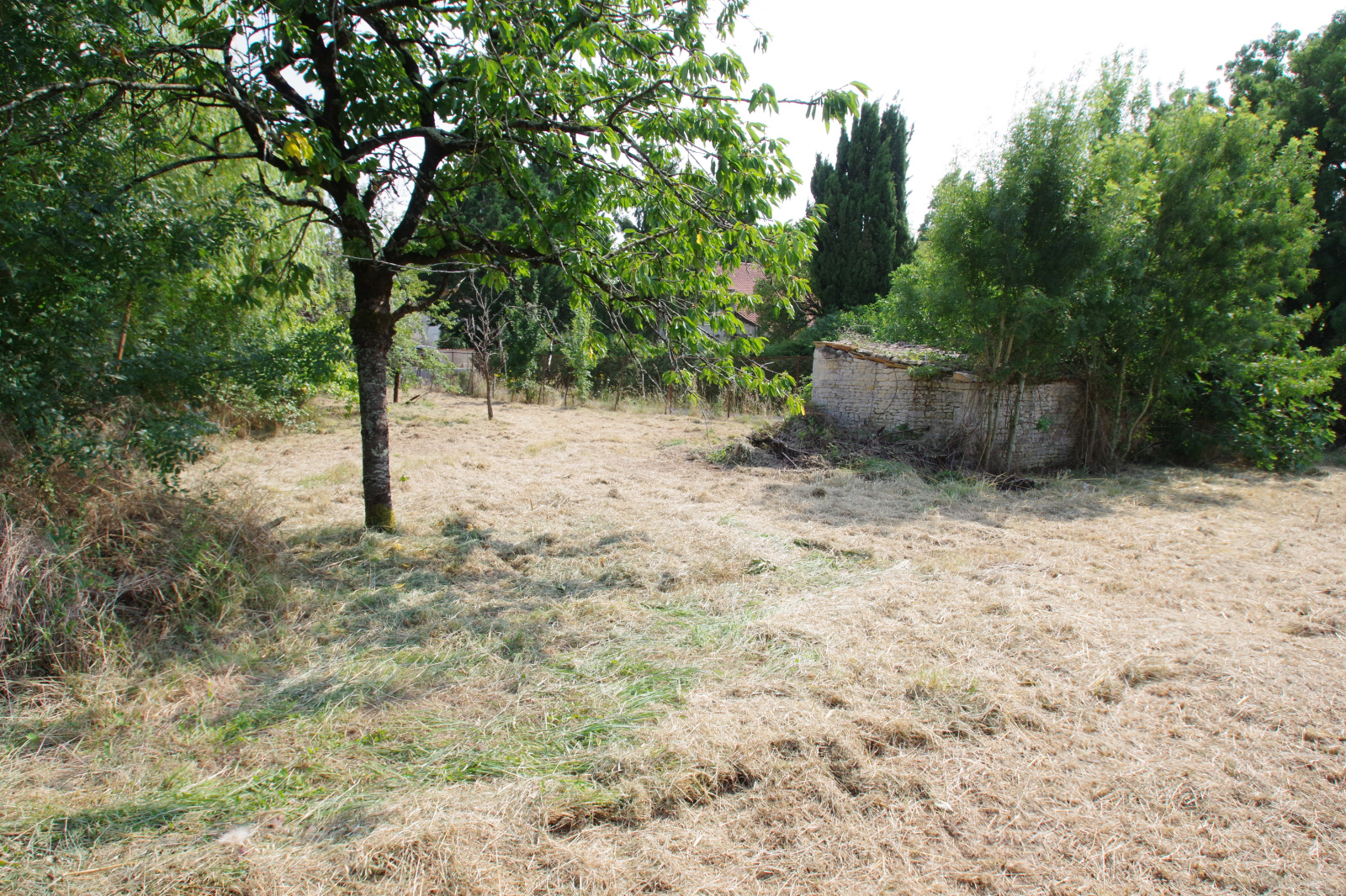 Terrain à bâtir de 446 m², non viabilisé (eau, électricité, tout à l'égout en bordure de terrain). Façade 23.26 m, profondeur 20.53 m.